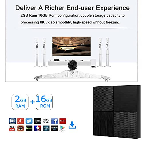 This Android TV box is a fantastic upgrade for any entertainment setup! The quad-core processor and 2GB RAM make streaming smooth, while 16GB storage gives plenty of room for apps. The 6K Ultra HD support delivers crisp visuals, and the 2.4G WiFi ensures stable connections. Easy to set up and packed with features—great value for the price!