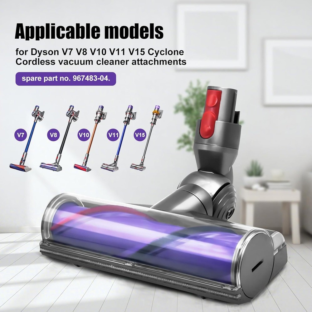 Direct Drive Cleaner Head Turbine Floor Tool for Product Details Product Dimensions: 2.8 x 7.68 x 10.27 inches Item Weight: 1.63 pounds Manufacturer: Odashen Country of Origin: China Item model number: 1 Batteries required: No Included Components: 1 Pcs Replacement motorhead cleaner head brush turbine tool Vacuum cleaner 50W direct drive brush for Dyson V7 V8 V10 V11 V15 SV10 SV11 SV12 SV14 Cyclone Cordless Vacuum Cleaner attachments, Replacement Part No.967483-04. The suction head is equipped with its own motor, which can absorb while sweeping. It has a large suction force and can penetrate into the carpet to absorb stubborn stains, etc.. Suitable for hard floor, ceramic tile, carpet dust removal. Rated power: 50W. Direct Drive Motorhead Floor Brush Cleaner Head Vacuum Cleaner is made of premium material for durable and practical use. Package includes: 1 Pcs Replacement motorhead cleaner head brush turbine tool.