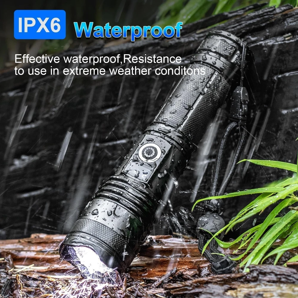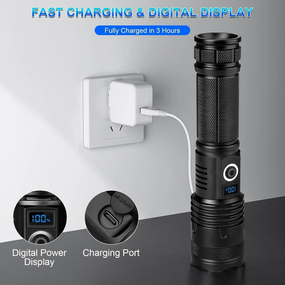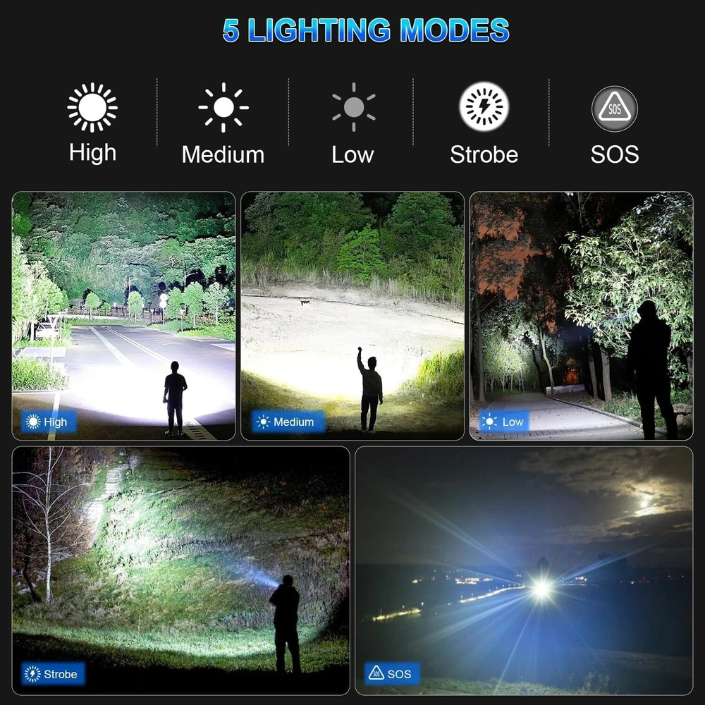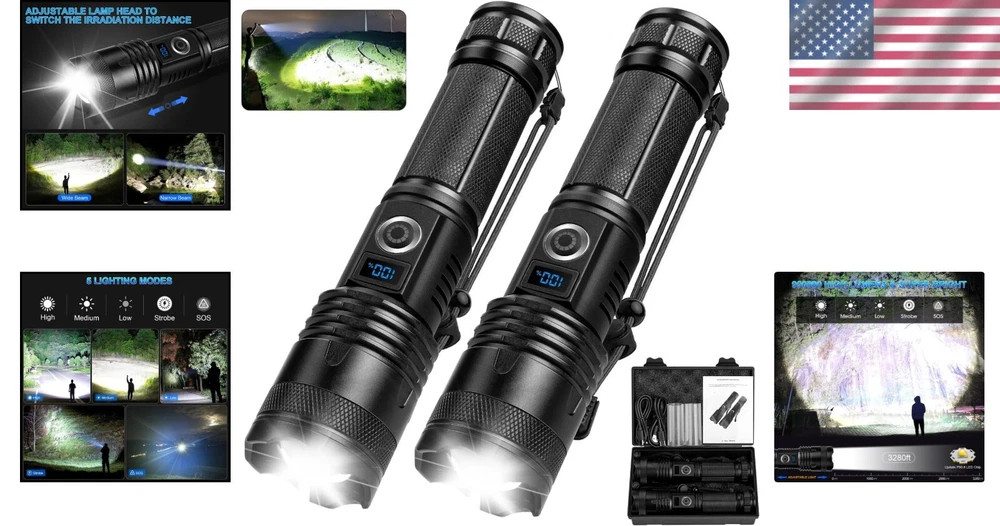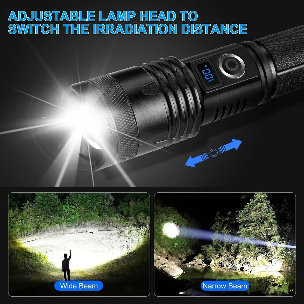 Powerful LED Flashlight Set with Digital Display - 990000 Lumens & Weatherproof