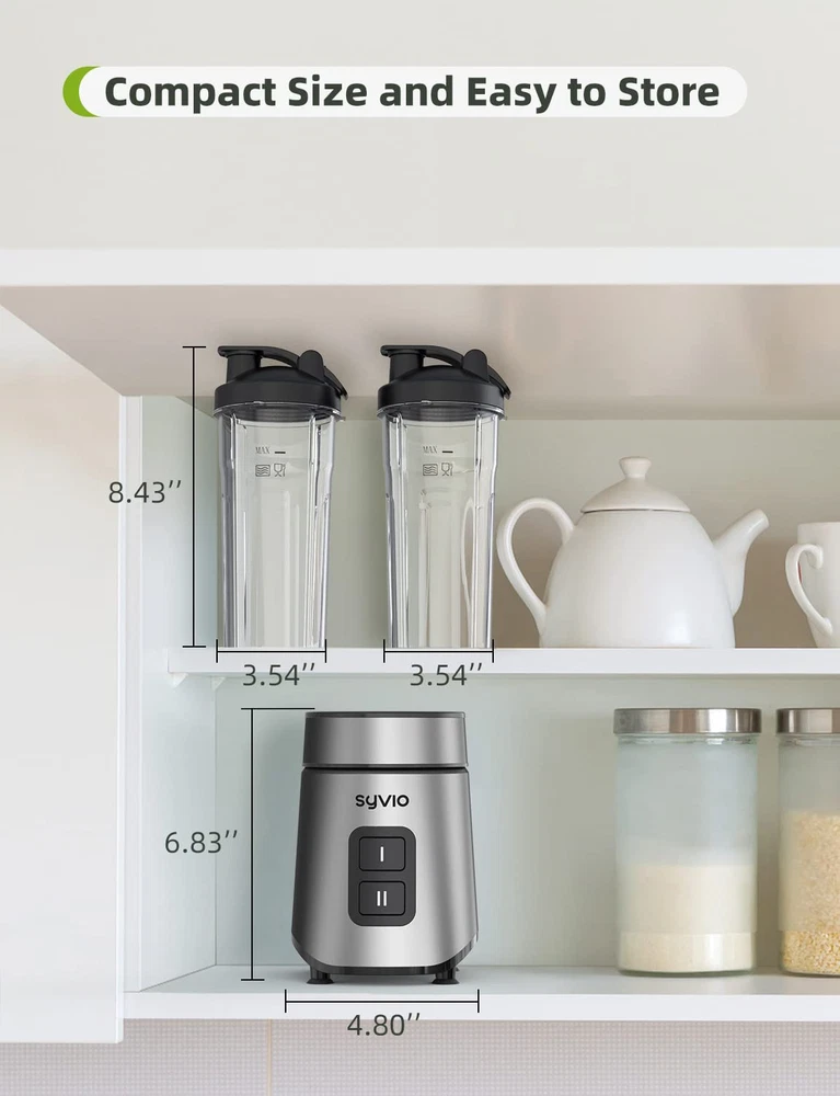 【Powerful Smoothie Blender】600W smoothie blender for shakes and smoothies with powerful motor pulse technology, quickly crushing fruits and vegetables, allowing your personal blender to expand your creativity in the kitchen. 【Easy to Use and Clean】Blender for smoothies is easy to use with one button operation. To clean, put clear water into the blender and turn it on. In addition, the smoothie maker can be easily cleaned in a dishwasher, except for the motor part. 【304 Stainless Blades and 2 Cups】Blender blade is made of 304 stainless steel, featuring a 4-blade cross and a flat 2-blade design that can easily blend and extract nutrients. It comes with 2 * 20 oz BPA-Free blender cups, which can easily meet the needs of a family for making juices and smoothies. 【Healthy and Safe】Food blender is equipped with a safety lock that only works when the blender cup is properly locked into the base. Sip freely with the 20oz BPA-free blender cup. You can mash vegetables and fruits into delicious beverages with peace of mind. 【Reliable Quality Assurance】smoothie blender has 24-hour 100% satisfaction customer service. If you experience any issues with our items or services, please do not hesitate to contact us. Additionally, we provide a 12-month warranty and lifetime technical support to guarantee our reliable quality.