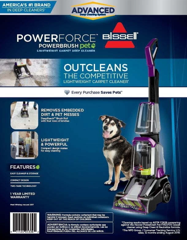 Rib 16X6.50-8 4-Ply Rated Lawn & Garden Tire Durable for Mowers Garden Tractors 28.72 USD 30.88 USD Free shipping 7% off Rib 15X6.00-6 4-Ply Rated Lawn and Garden Tire Durable 27.3 USD 29.36 USD Free shipping 7% off NEW Wide Grip Kettlebell Exercise Fitness Weight Set 3PC 10lb 15lb 20lb 3 Pieces 26.39 USD 28.38 USD Free shipping 7% off Full Motion TV Wall Mount 10-50 Inch TVs W/ Tilt Swivel HDMI Cable UL Certified 22.68 USD 24.39 USD Free shipping 7% off Lawn Mower Blade Removal Tool Rigid Metal ConstructionEasy-Turn Clamp Handle 15.43 USD 16.59 USD Free shipping 7% off Penny Candy Glass Jar with Lid Cookie Jar 1 Gallon Food Storage Jar for Snacks 9.97 USD 10.72 USD Free shipping 7% off 1.5 Gallon 2 Peak HP Poly Wet/Dry Shop Vacuum Cleaner Portable Home Carpet Vac 37.32 USD 40.13 USD Free shipping 7% off Kansas City BBQ Dry Rub Seasoning 14.5oz Gluten Free Flavors Beef Pork Chicken 9.64 USD 10.37 USD Free shipping 7% off Extra Strength Vitamin D3 Softgels 125 mcg 5000 IU Bone Immune Health 250 Count 9.81 USD 10.55 USD Free shipping 7% off Fiberglass Spinning Rod 6ft 2-Piece Medium-Light Fishing Pole Twist-Lock Handle 14.57 USD 15.67 USD Free shipping 7% off Heavy-Duty Wildlife Feeder Accessory Leg Adapter Kit for 350 Pound Feeder Metal 23.75 USD 25.54 USD Free shipping 7% off 8" x 8" Glass Cake Pan Baking Dish Oven Safe Non Stick Bakeware Set Contains 7.71 USD 8.29 USD Free shipping 7% off The four-row Deep Reach Power Brush works with BISSELL Advanced formula to remove pet messes like dog and cat urine, vomit, and mud. It's easy to quickly grab if your pet has an accident on the area rug or tracks in mud from the backyard. Never put dirty water back on your carpet or area rugs with this machine's two-tank system. Clean water and formula are kept in one tank, while dirty water is pulled into a separate tank. Power Force Power Brush Pet is lightweight and powerful, so it's great for smaller living spaces that may have limited storage. When you're done using it, features like the easy-to-remove water tanks and a removable nozzle make maintenance simple. Four Row Deep Reach Power Brush. Lifts away dirt and stains that a vacuum leaves behind. Tackle Tough Pet Messes. Great for cleaning high traffic areas, small spaces, and area rugs where pet messes happen. Lightweight & Powerful. Compact design makes cleaning carpets easy and convenient. Two-Tank Technology. Never clean with dirty water, plus the tanks are easy to remove, fill, and empty. Removable Nozzle. Easily maintain and clean your machine. Don't Forget Your Formula. Use with specialized BISSELL formula to get your best deep clean.