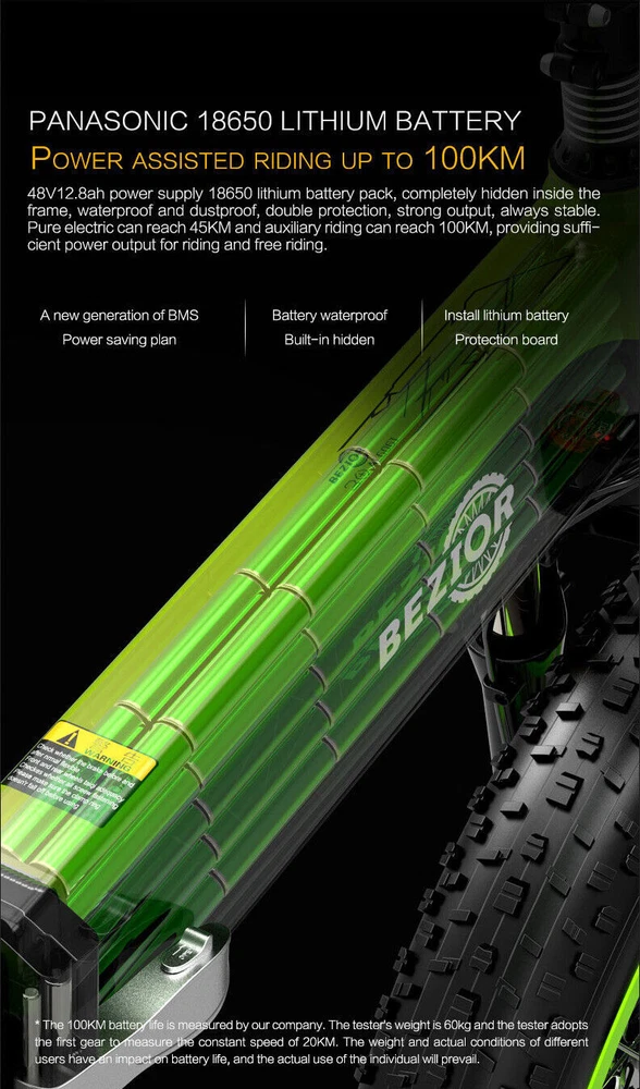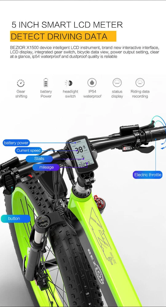 DESCRIPTION: Condition: 100% New Colour: As the picture shown Item Specification Model:X1500 Material: Aluminum Alloy Folded size: 100x105x45cm Unfolded size: 85x105-95cm Wheel: 26x4.0 Aluminum Alloy Wheels Applicable Height: 165-190cm Max Speed: 40km/h Max Grade: 38° Waterproof Degree: IP54 The Charger: 48V 3A Battery Capacity: 12.8AH Battery Rate Voltage: 48V Control System: 48V 20a Vector Controller Motor Rated Voltage:48V Motor Rated Power: 1500W Charging Time: 4-6h Brake: ZOOM H875 Power-Off Hydraulic Disc Brake Load: 200kg Product Weight: 31kg Package Size: 163x29.5x79.5 Package Contents: 1x Bezior X1500 Electric Moped Bicycle 1x Charger 1x Wrench 1x Multi-function hexagon tool 1x Lock 1x Front Wheel Quick Release 1x Pump 1x User Manual NOTE: 1. Due to the hand measurement, there may have error measurement about 1-5mm. 2.Item color displayed in pictures may be showing slightly different on your computer monitor since monitors are not calibrated same. Your understanding will be highly appreciated. SHIPMENT: 1.Buyer take responsibility in import / tax cost (not included in item price) 2.Pls contact with us to confirm extra cost if you need to upgrade the shipping option 3.If there's any concern about shipping, pls contact with us for further confirmation RETRUN POLICY: -30 DAY MONEY BACK RETURN POLICY: 1. If you are unhappy with your item or changing of mind purchases for whatever reason, pls keep the item and package original. Buyer needs to afford the return postage. Besides, original postage will not return. 2. Please contact us within 30 days if you have a faulty item and we will cover the return postage where necessary, we do not cover this outside 30 days of purchase. -ADDRESS CHANGES: 1. If you enter the incorrect name or shipping details before purchasing, we will arrange shipment for you according to your ebay address. 2. We are not responsible for these changes if there is a mistake entered by the buyer. CONTACT US: 1. Our working time is from Beijing time 9:00am to 18:00pm on working days. 2. We hope to give you a good shopping experience. We will glad to help you solve problems once we receive your letter on working time. 3. If you have any questions or advice about the product you receive, pls contact us and send the pictures about the item firstly, we will check the issue for you ASAP and make you sastified.