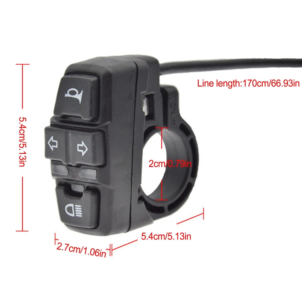 Product Description Features: *This handlebar switch is made of high-quality nylon material, strong, waterproof, sturdy and for long-term use. *The switch is small in size, easy to assemble, suitable for handlebars with a diameter of 2 cm. *Three-in- function, headlight, , turn signal switch, switch. *Compact and lightweight, perfect match with other accessories, suitable for any road bike, motorcycle, electric bike, scooter, etc. *The switch is easy to install-wire connection for easy access and control, bringing you a better driving experience. Specific ation: *Material:Nylon *Color:black *Size:5.4*5.4*2.7CM *Specification:36V、48V Package Contents: 1*Front light turn signal switch Note: 1. The real color of the item may be slightly different from the pictures shown on website caused by many factors such as brightness of your monitor and light brightness. 2. Please allow slight manual measurement deviation for the data. Payment Payment must be completed within 5 days. If you have any problems about payment, please contact us via ebay message. Delivery details We only ship to confirmed ebay Order addresses. Please comfirm that your Order address is in line with your shipping address. Please kindly note that the c ombined shipping is not provided because the shipping fee is calculated by weight. Also, the each additional item means exactly the the same color and size. It takes about 7 -15 working days to US; about 10-30 working days to other countries. Transit time may be a little delayed because of the bad weather and customs inspection . If you do not receive your item within 30 working days since payment finished, please contact us immediately for further assistance. Contact us We strive for 100% customer satisfaction! Positive Feedback is very important to us. If you have any questions, p lease feel free to contact us via "Ask seller a question" . We will reply your email within 24 working hours. On Jan 8, 2025 at 10:07:38 PST, seller added the following information: