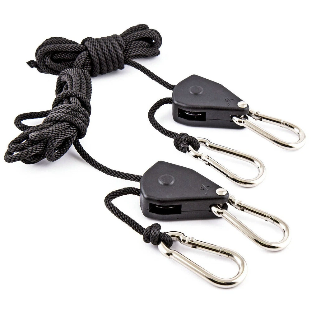 Features: Brand new high quality ratchet hanger Ratchet hanging rope with high strength and long service life Fully adjustable and locking design for your convenience Helps to hang many things, such as hangers, indoor fans, planter lights, etc. This pair of ropes can withstand up to 150 LBS High-quality metals and ropes ensure strong strength and long-lasting durability. specification: Size: 1/8 inch Includes 8 '' Polypropylene Rope Clip and Carabiner Plastic material Application: Used for led light growth and led fish tank light, see pictures Easy to use Quick lock and lock Bearing capacity: 150 LBS 8 inches long per pair Pa ckage includes: ratchet rope(with box, as shown) On Oct 13, 2022 at 18:41:17 PDT, seller added the following information: