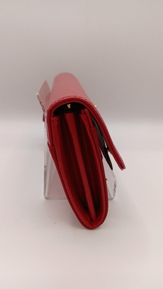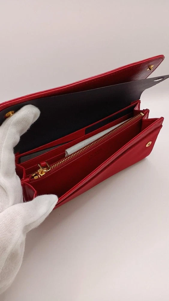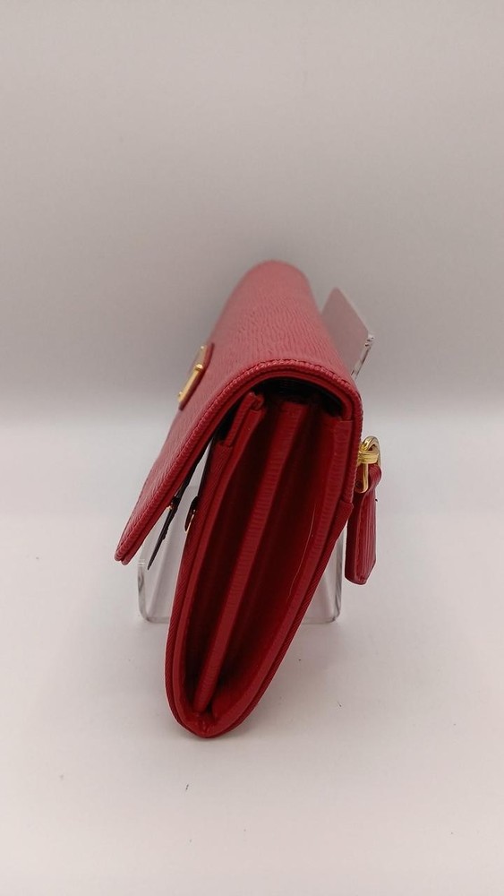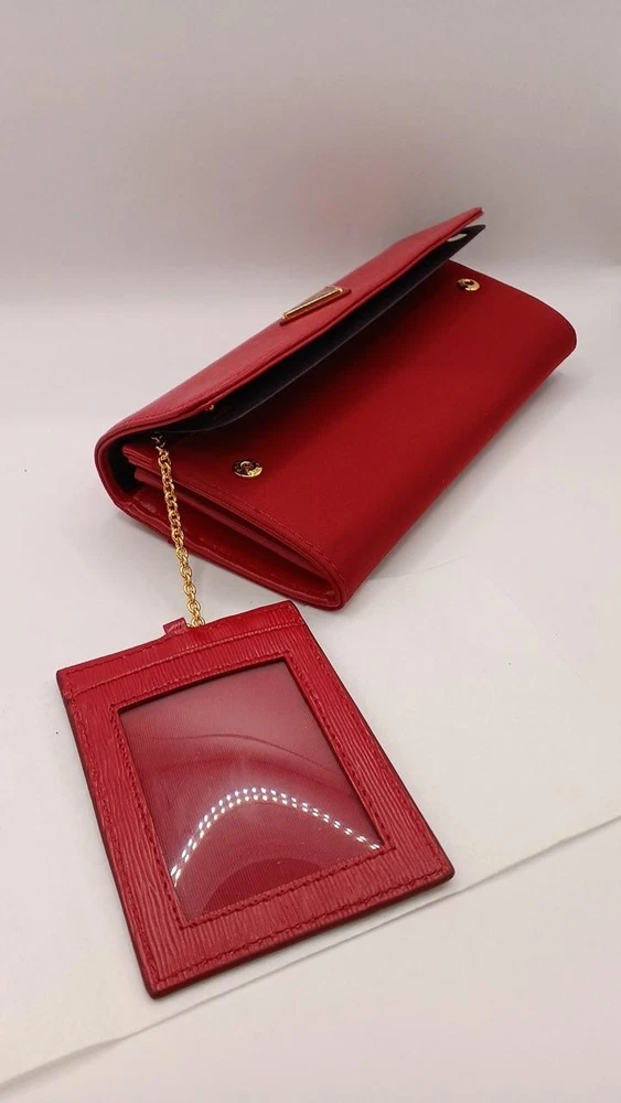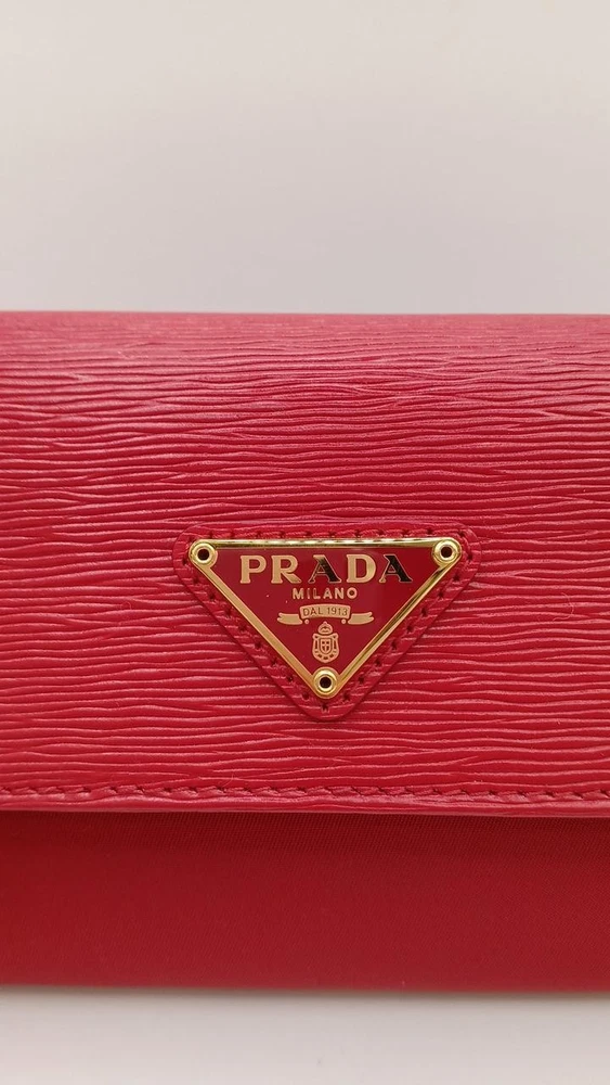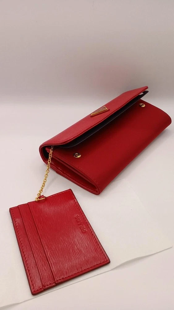 This Prada wallet is absolutely stunning! The rich red color is eye-catching, and the leather feels luxurious. It's spacious enough to hold all my cards and cash without being bulky. The craftsmanship is top-notch, and the iconic logo adds a classy touch. Shipping was fast, and the seller was very responsive. Definitely worth the investment—I get compliments every time I use it!