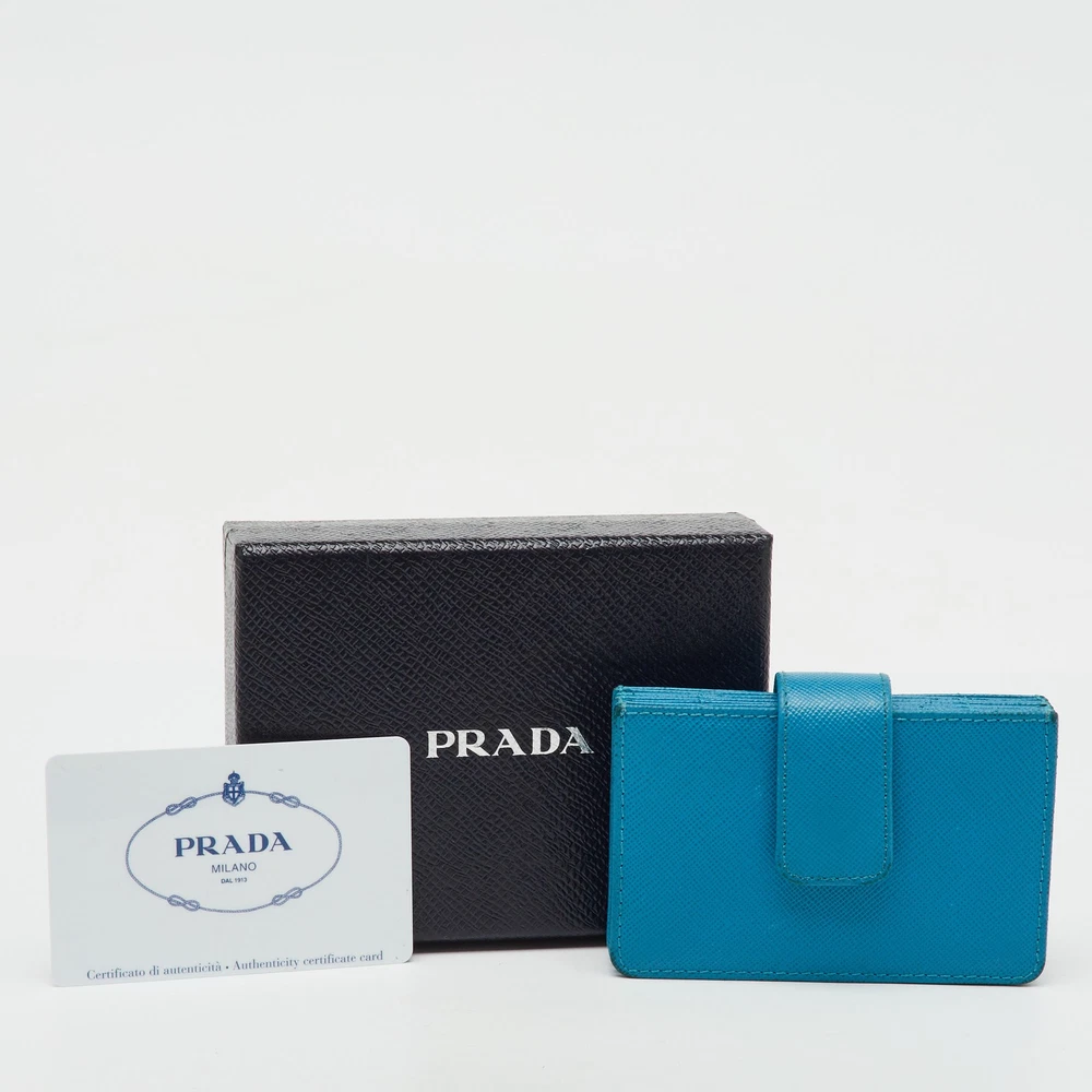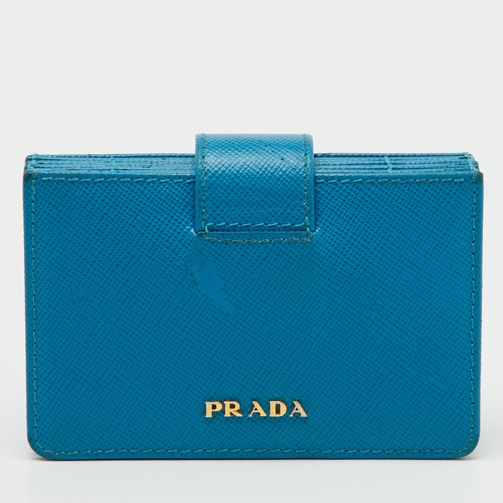 Prada keeps it simple and elegant with this aqua blue card holder, crafted in iconic Saffiano leather for durable charm.Certified by The Luxury Closet - This item has gone through a detailed authentication process overseen by our experts. We offer a lifetime guarantee of authenticity on all our items. Import duties, taxes and charges are not included in the item price. These charges are the buyers responsibility. Please check with your country’s customs office to determine what these additional cost will be prior to buying. Our eBay Store About Us Contact Us Add to Favorite Sellers Prada Aqua Blue Saffiano Leather Card Holder $300.3 Prada keeps it simple and elegant with this aqua blue card holder, crafted in iconic Saffiano leather for durable charm. Product Details Brand Color Blue Dimensions Material Saffiano Leather Size Medium Outsole Width Outsole Length Heel Height Includes Certified by The Luxury Closet This item has gone through a detailed authentication process overseen by our experts. We offer a lifetime guarantee of authenticity on all our items. How We Check The in-house team of experts at The Luxury Closet is highly trained to verify the authenticity and the condition of the luxury products. They ensure that only 100% authentic items are put on sale.The evaluation process is unique with its own mix of assessment criteria and differs according to the category. Each item is evaluated based on the following combination of hallmarks, hardware, stitching, symmetry, material, craftsmanship, stamping, codes, hologram stickers, and packaging. Our authenticators also check if the items have been modified or amended (e.g., aftermarket diamonds, replaced batteries, repaired bags, etc.) International Buyers Import duties, taxes and charges are not included in the item price. These charges are the buyers responsibility. Please check with your country’s customs office to determine what these additional cost will be prior to buying.