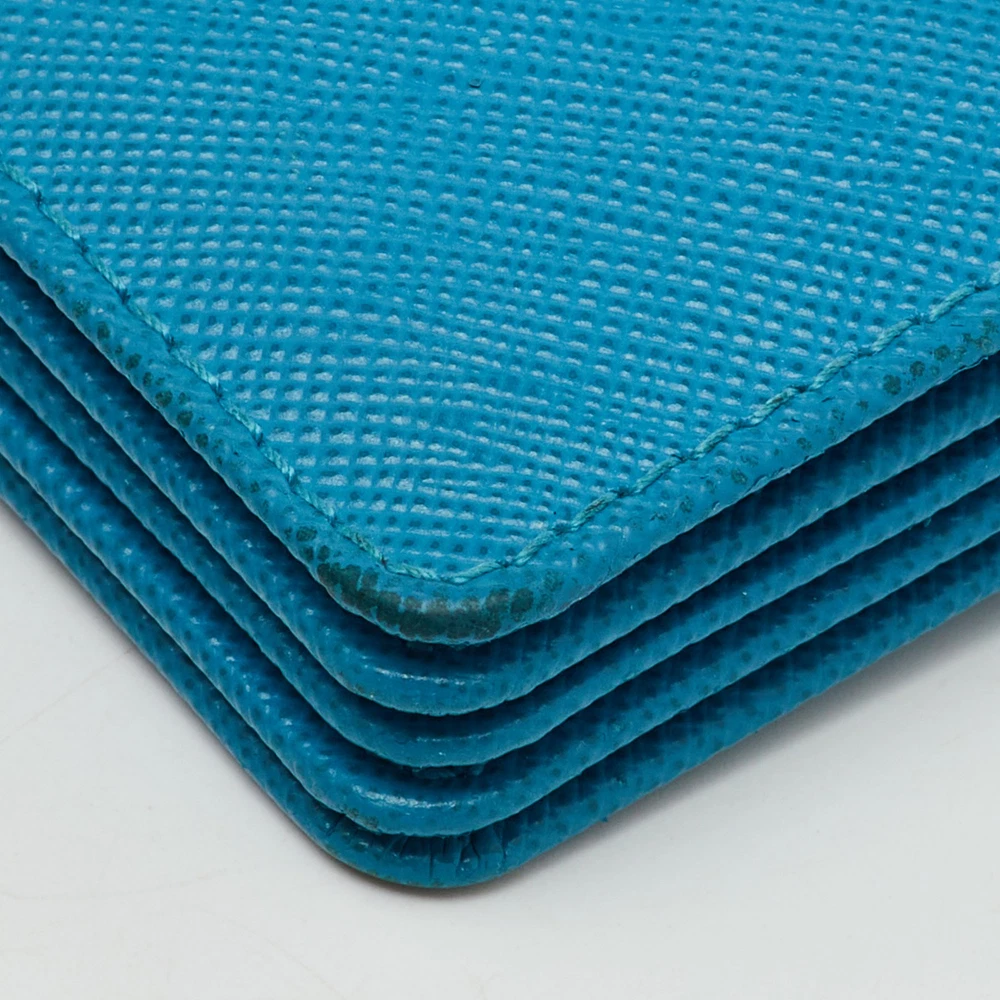 Prada Aqua Blue Saffiano Leather Card Case