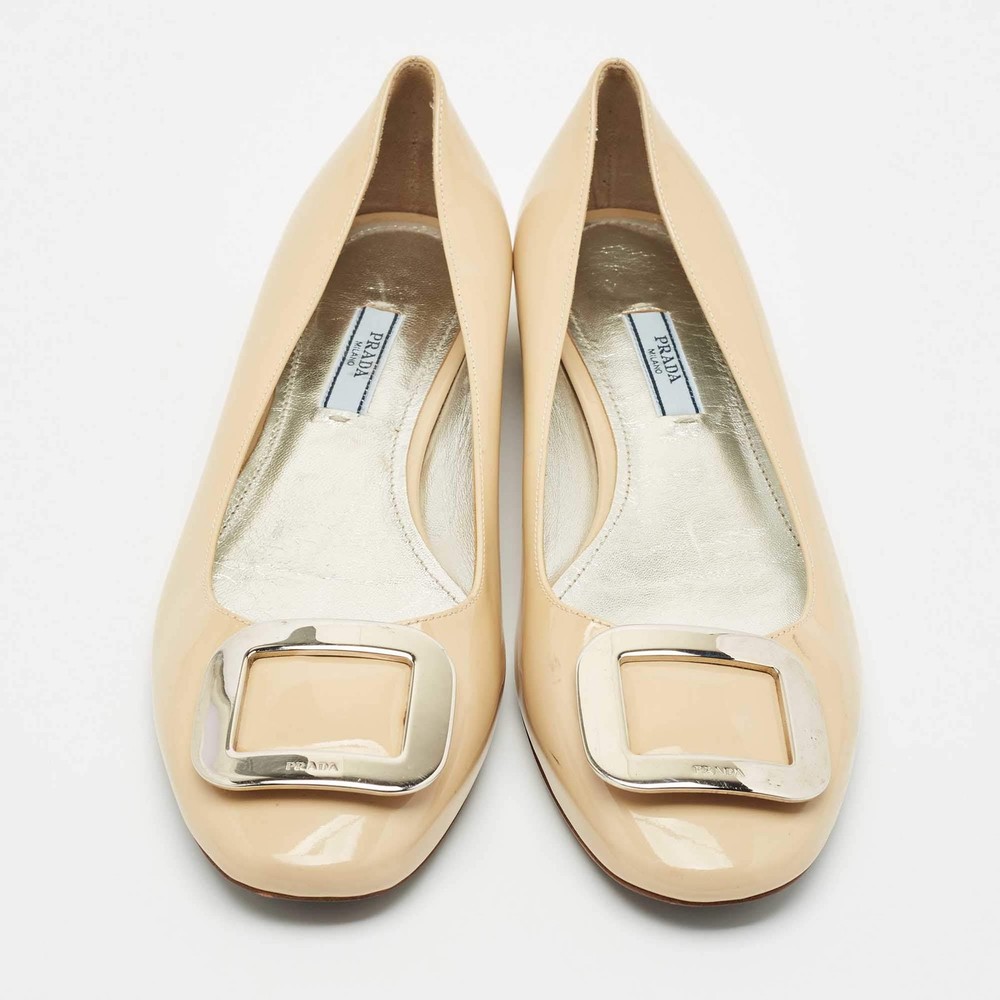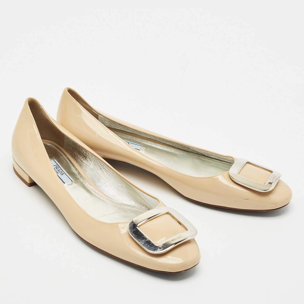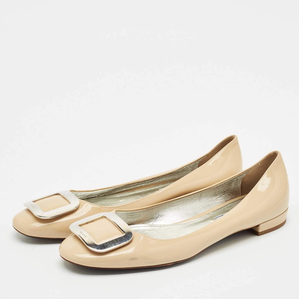 Our eBay Store About Us Contact Us Add to Favorite Sellers Prada Beige Patent Leather Ballet Flats Size 39.5 Minimal and refined, these Prada ballet flats are crafted from glossy beige patent leather with a rounded toe and understated charm. A staple of effortless chic, they seamlessly transition from desk to dinner. Product Details Brand Prada Color Beige Includes The Luxury Closet Packaging Outsole Length 27.5 cm Outsole Width 8.5 cm Size 39.5 Certified by The Luxury Closet This item has gone through a detailed authentication process overseen by our experts. We offer a lifetime guarantee of authenticity on all our items. How We Check The in-house team of experts at The Luxury Closet is highly trained to verify the authenticity and the condition of the luxury products. They ensure that only 100% authentic items are put on sale.The evaluation process is unique with its own mix of assessment criteria and differs according to the category. Each item is evaluated based on the following combination of hallmarks, hardware, stitching, symmetry, material, craftsmanship, stamping, codes, hologram stickers, and packaging. Our authenticators also check if the items have been modified or amended (e.g., aftermarket diamonds, replaced batteries, repaired bags, etc.) International Buyers Import duties, taxes and charges are not included in the item price. These charges are the buyers responsibility. Please check with your country’s customs office to determine what these additional cost will be prior to buying.