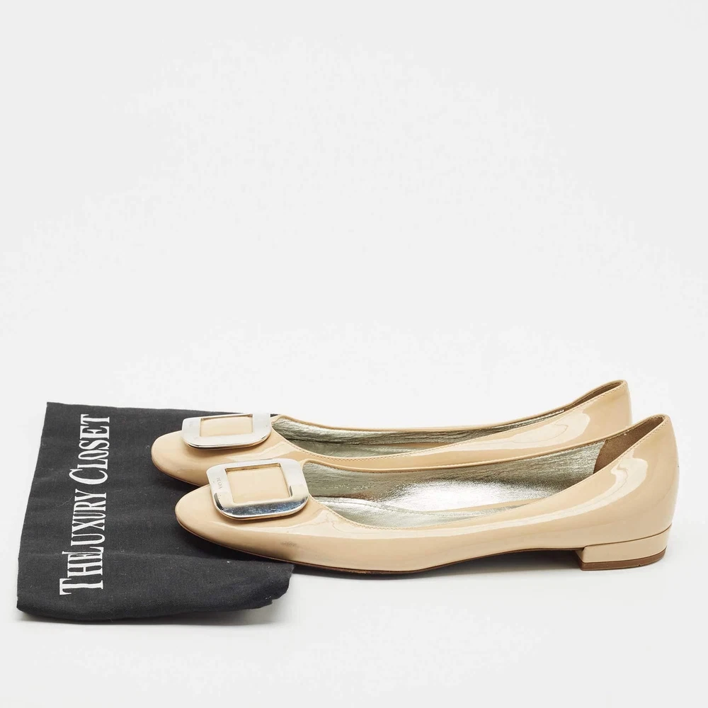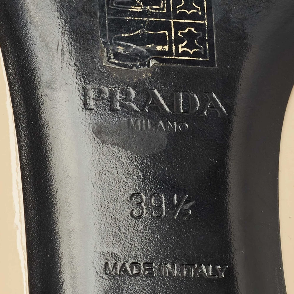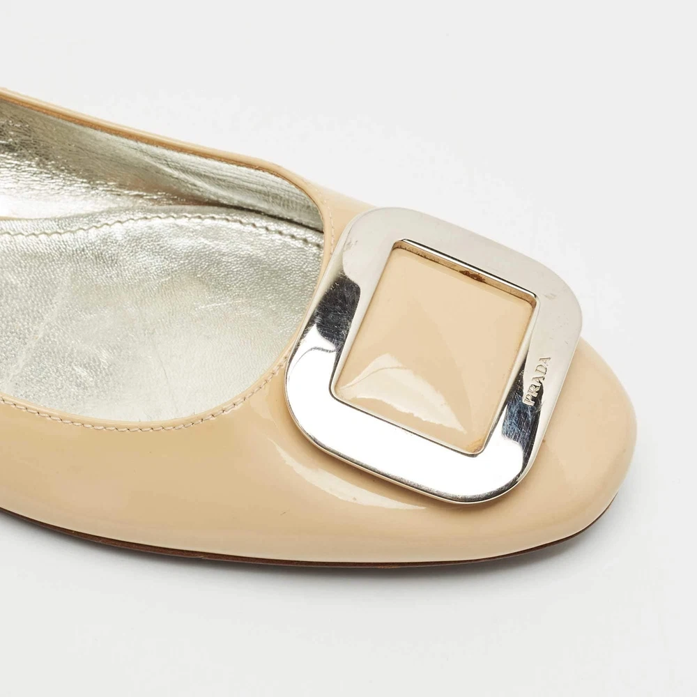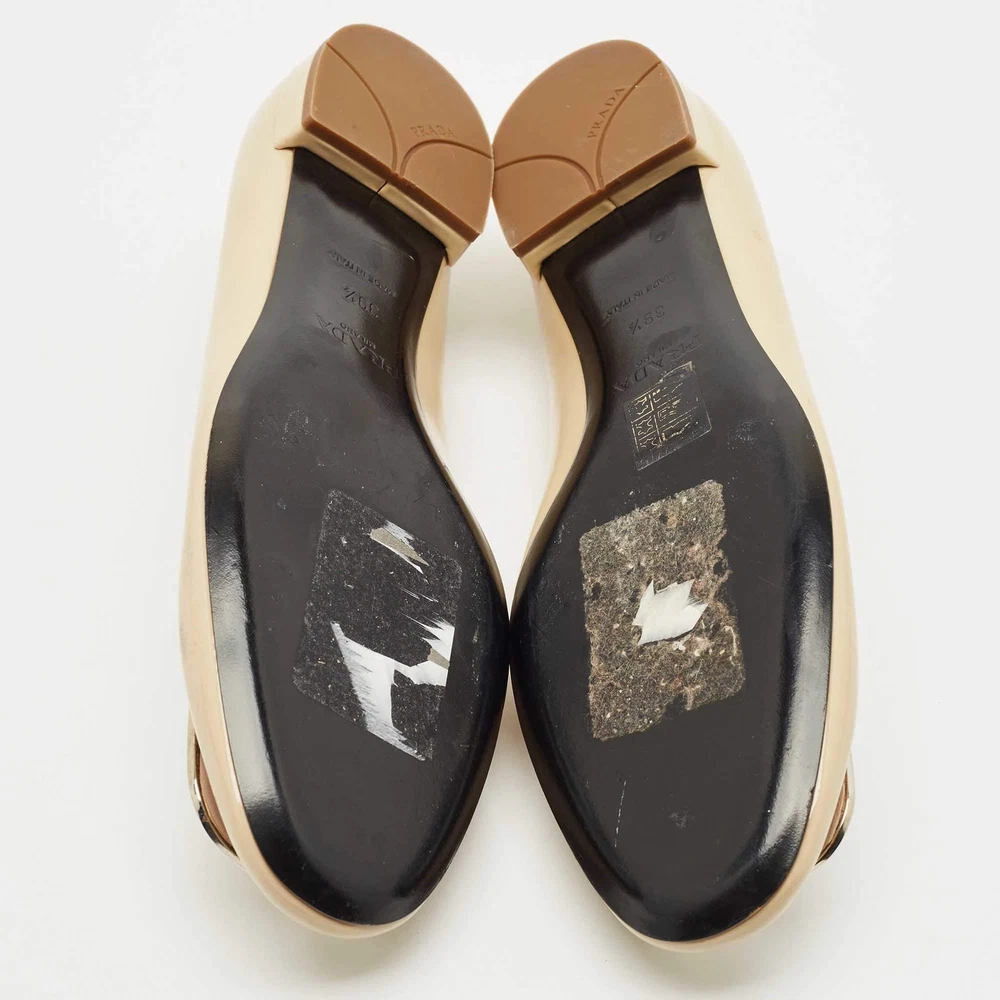 Our eBay Store About Us Contact Us Add to Favorite Sellers Prada Beige Patent Leather Ballet Flats Size 39.5 Minimal and refined, these Prada ballet flats are crafted from glossy beige patent leather with a rounded toe and understated charm. A staple of effortless chic, they seamlessly transition from desk to dinner. Product Details Brand Prada Color Beige Includes The Luxury Closet Packaging Outsole Length 27.5 cm Outsole Width 8.5 cm Size 39.5 Certified by The Luxury Closet This item has gone through a detailed authentication process overseen by our experts. We offer a lifetime guarantee of authenticity on all our items. How We Check The in-house team of experts at The Luxury Closet is highly trained to verify the authenticity and the condition of the luxury products. They ensure that only 100% authentic items are put on sale.The evaluation process is unique with its own mix of assessment criteria and differs according to the category. Each item is evaluated based on the following combination of hallmarks, hardware, stitching, symmetry, material, craftsmanship, stamping, codes, hologram stickers, and packaging. Our authenticators also check if the items have been modified or amended (e.g., aftermarket diamonds, replaced batteries, repaired bags, etc.) International Buyers Import duties, taxes and charges are not included in the item price. These charges are the buyers responsibility. Please check with your country’s customs office to determine what these additional cost will be prior to buying.
