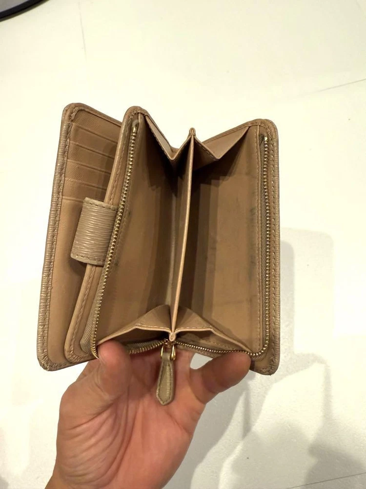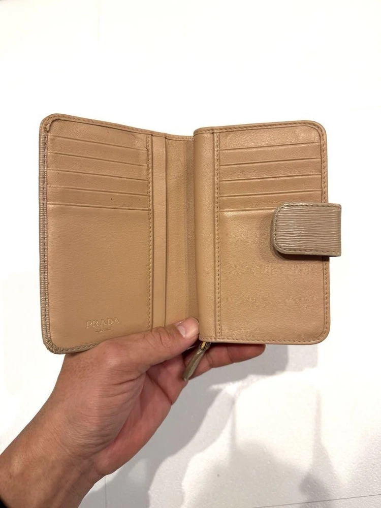 Just received this gorgeous Prada wallet and it's even better than expected! The leather feels luxurious, it's surprisingly compact yet holds everything I need, and the beige color is so elegant. Absolutely love it!