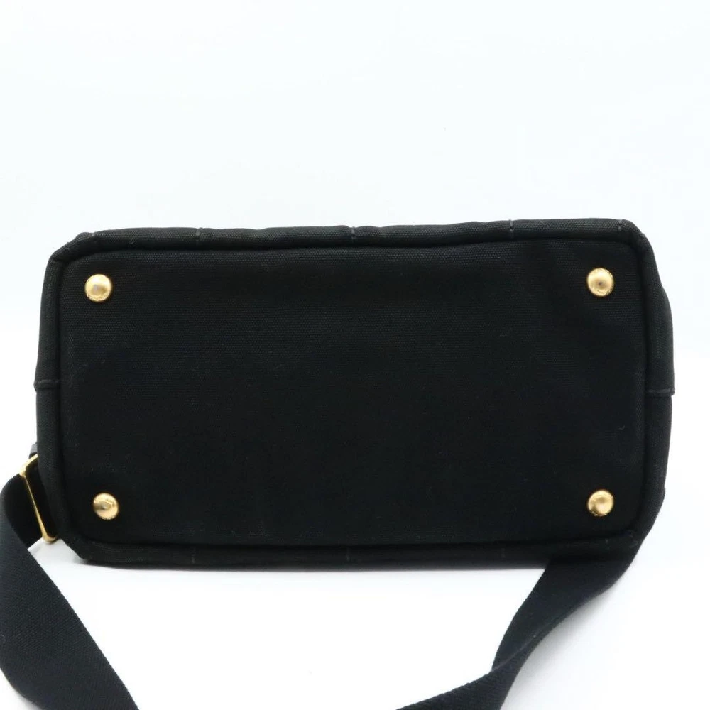 Prada Canapa handbag shoulder bag in black with gold hardware. Size approximately 6.69 inches in height, 11.02 inches in width, and 5.91 inches in depth, with a 48.43-inch adjustable shoulder strap. Features 3 pockets and 1 zipper pocket. Includes a shoulder strap. No stickiness. Zipper is smooth. Button fastens securely. Slight scuffing and wrinkling are present. I promise fast shipping via FedEx or DHL as soon as possible! Import duties, taxes and charges are not included in the item price or shipping charges. These charges are the buyer’s responsibility. These charges are normally collected by the delivering freight (shipping) company or when you pick the item up - do not confuse them for additional shipping charges.