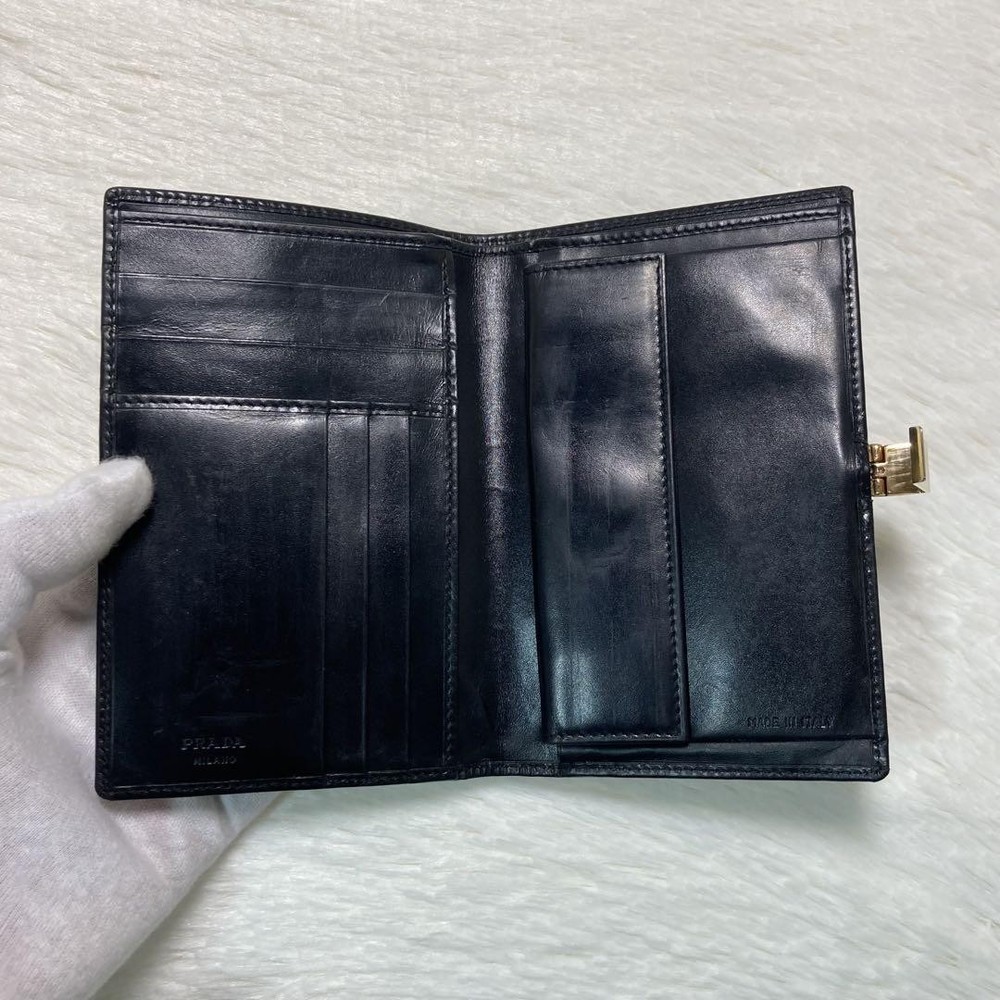 Absolutely love this Prada wallet! The gold logo adds such a classy touch to the classic black bifold. It's sleek, well-made, and fits perfectly in my pocket. Definitely worth every penny!