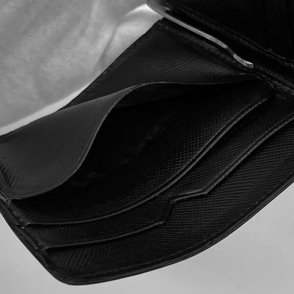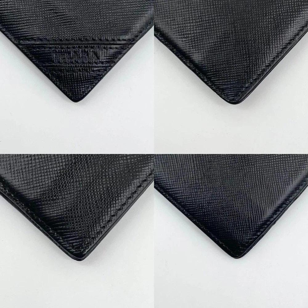 Prada Black Leather Bifold Wallet with Money Clip and Embossed Logo