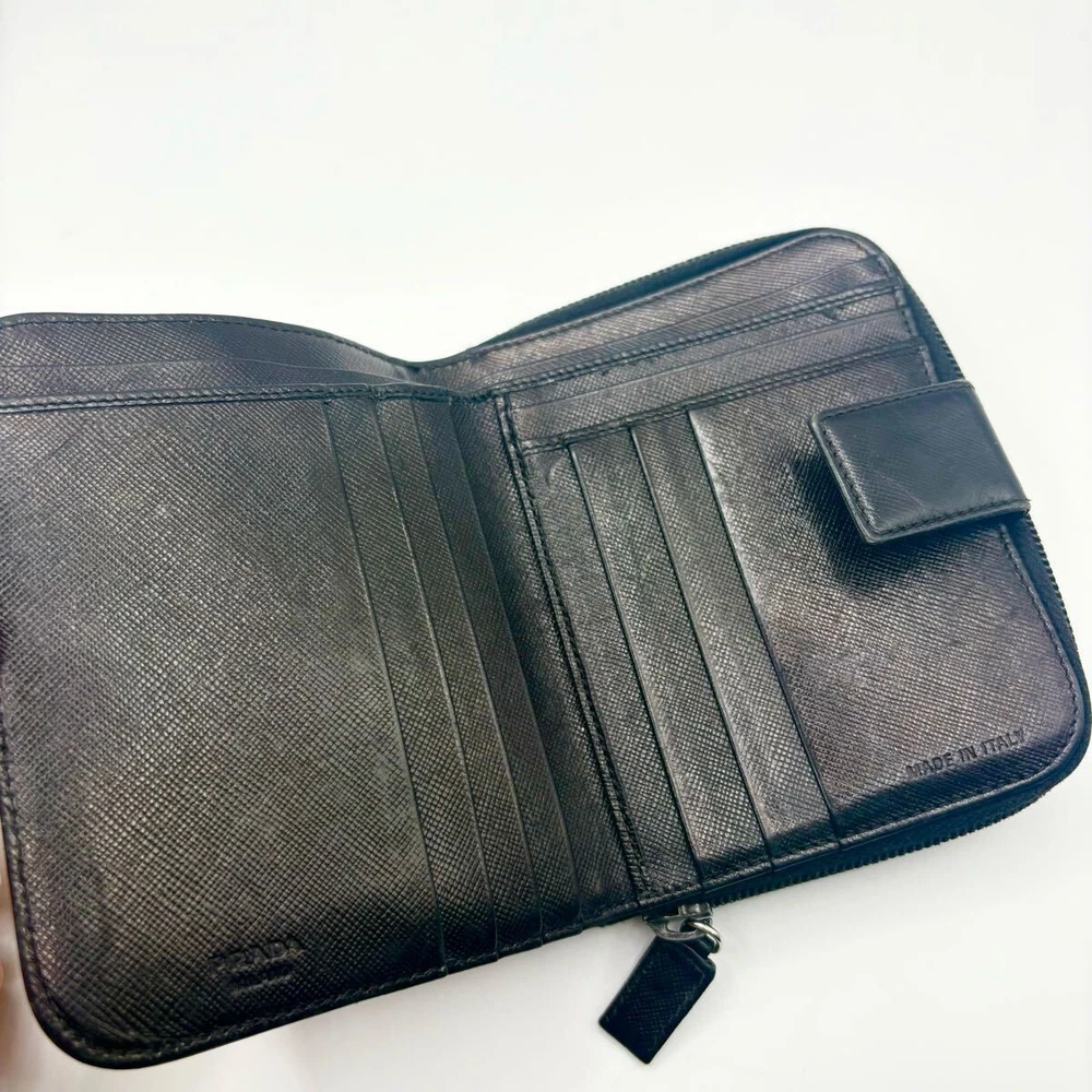 Absolutely love this Prada wallet! The leather feels luxurious and the triangle logo adds that perfect designer touch. It's surprisingly slim yet holds all my cards and cash perfectly. The craftsmanship is impeccable and it looks even better in person. Definitely worth every penny!