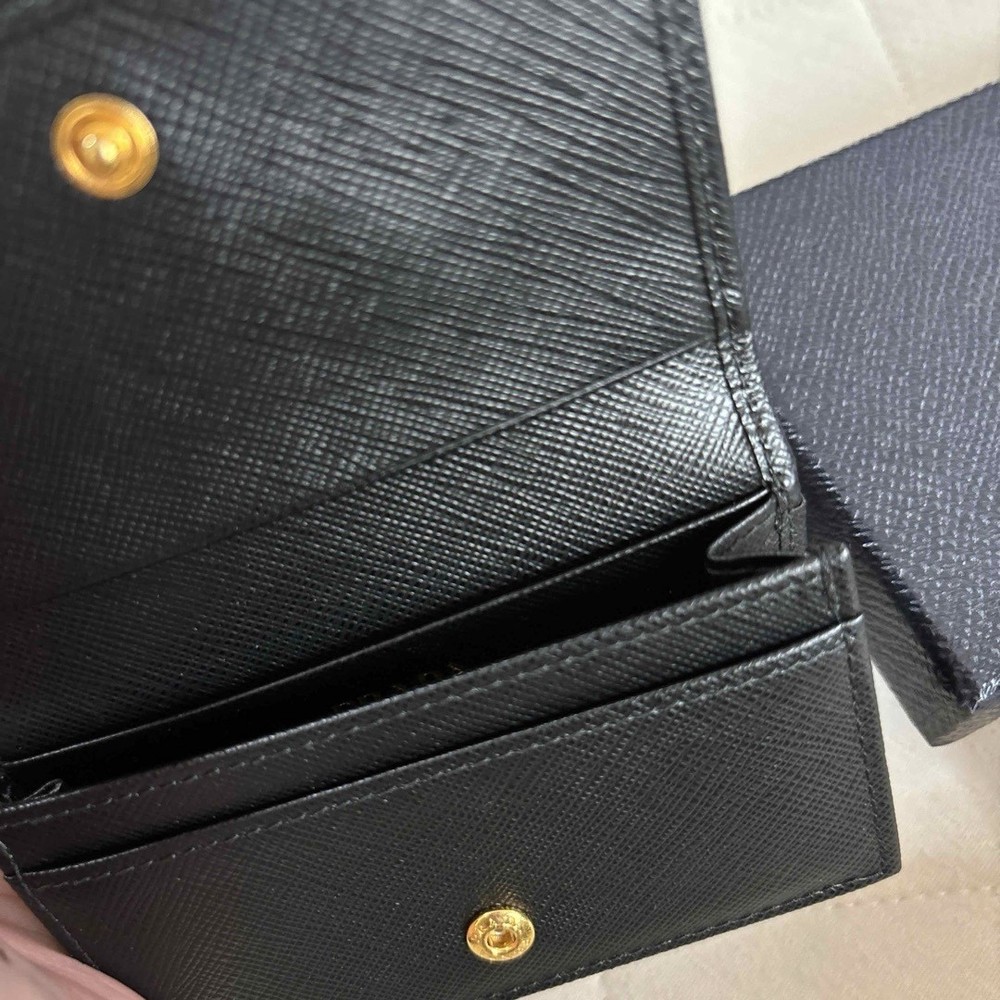 This sleek Prada card case is pure luxury—soft black leather, perfect size for business cards or essentials, and comes with the box and certificate. Feels premium, looks timeless, and fits easily in any pocket or bag. A must-have for anyone who appreciates fine craftsmanship and understated elegance. Worth every penny!