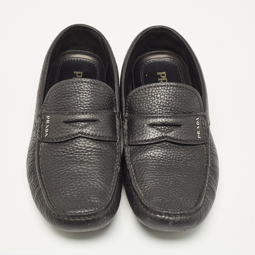 These slip on loafers from Prada are perfect for frequent use. They are beautifully crafted using black leather with the brand detail on the vamps.Certified by The Luxury Closet - This item has gone through a detailed authentication process overseen by our experts. We offer a lifetime guarantee of authenticity on all our items. Import duties, taxes and charges are not included in the item price. These charges are the buyers responsibility. Please check with your country’s customs office to determine what these additional cost will be prior to buying. Our eBay Store About Us Contact Us Add to Favorite Sellers Prada Black Leather Slip On Loafers Size 41 $212.3 These slip on loafers from Prada are perfect for frequent use. They are beautifully crafted using black leather with the brand detail on the vamps. Product Details Brand Color Black Dimensions Material Leather Size 41 Outsole Width 9.5 cm Outsole Length 29 cm Heel Height Includes Original Dustbag, Original Box Certified by The Luxury Closet This item has gone through a detailed authentication process overseen by our experts. We offer a lifetime guarantee of authenticity on all our items. How We Check The in-house team of experts at The Luxury Closet is highly trained to verify the authenticity and the condition of the luxury products. They ensure that only 100% authentic items are put on sale.The evaluation process is unique with its own mix of assessment criteria and differs according to the category. Each item is evaluated based on the following combination of hallmarks, hardware, stitching, symmetry, material, craftsmanship, stamping, codes, hologram stickers, and packaging. Our authenticators also check if the items have been modified or amended (e.g., aftermarket diamonds, replaced batteries, repaired bags, etc.) International Buyers Import duties, taxes and charges are not included in the item price. These charges are the buyers responsibility. Please check with your country’s customs office to determine what these additional cost will be prior to buying.