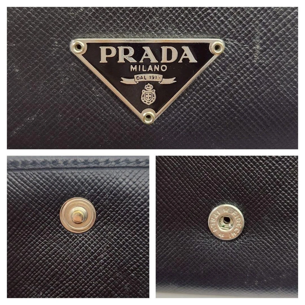 Prada Black Leather Trifold Wallet Triangle Logo Compact Mens Womens Key Features - Brand: Prada - Product Type: Tri-fold wallet / Compact wallet / Mini wallet - Model: Round zipper with triangular logo - Material: Saffiano leather - Color: Black - Size: approximately 10cm (3.9 inches) in height, 11cm (4.3 inches) in width, 1.5cm (0.6 inches) in depth - Condition: Slight signs of use, minimal scratches or stains, cleaned and maintained for immediate use - Note: No accessories are included unless noted in the title or product description. If you have any questions, please ask before purchasing. Specifications Brand Prada Country Japan Color Black Material Leather Accents Logo Pattern Logo Product Description Item Title Prada Trifold Wallet Black Leather Triangle Logo Payment Supports managed payments Please pay within 5 days after auction is finished. About Us We are located in Japan. It's our pleasure to make you happy by proposing our recommend item. If you have any questions or request about items, please feel free to ask us. International Buyers - Please Note: -Import duties, taxes, and charges are not included in the item price or shipping charges. These charges are the buyer's responsibility. -Please check with your country's customs office to determine what these additional costs will be prior to bidding/buying. -These charges are normally collected by the delivering freight (shipping) company or when you pick the item up - do not confuse them for additional shipping charges. -We do not mark merchandise values below value or mark items as - gifts - The US and International government regulations prohibit such behavior. Thank you for your understanding.