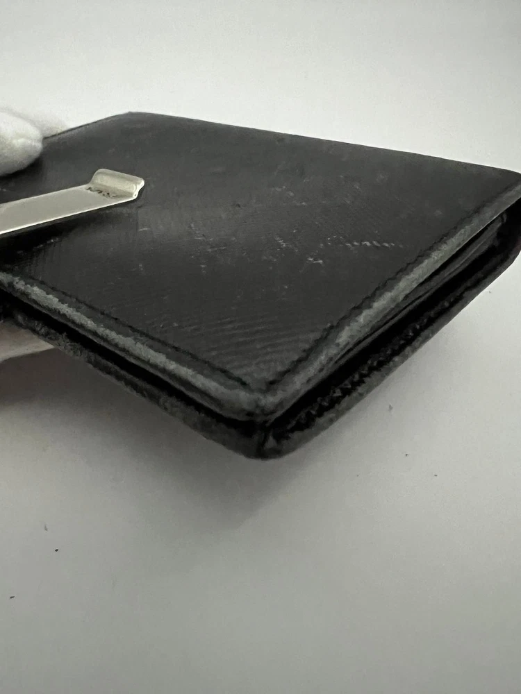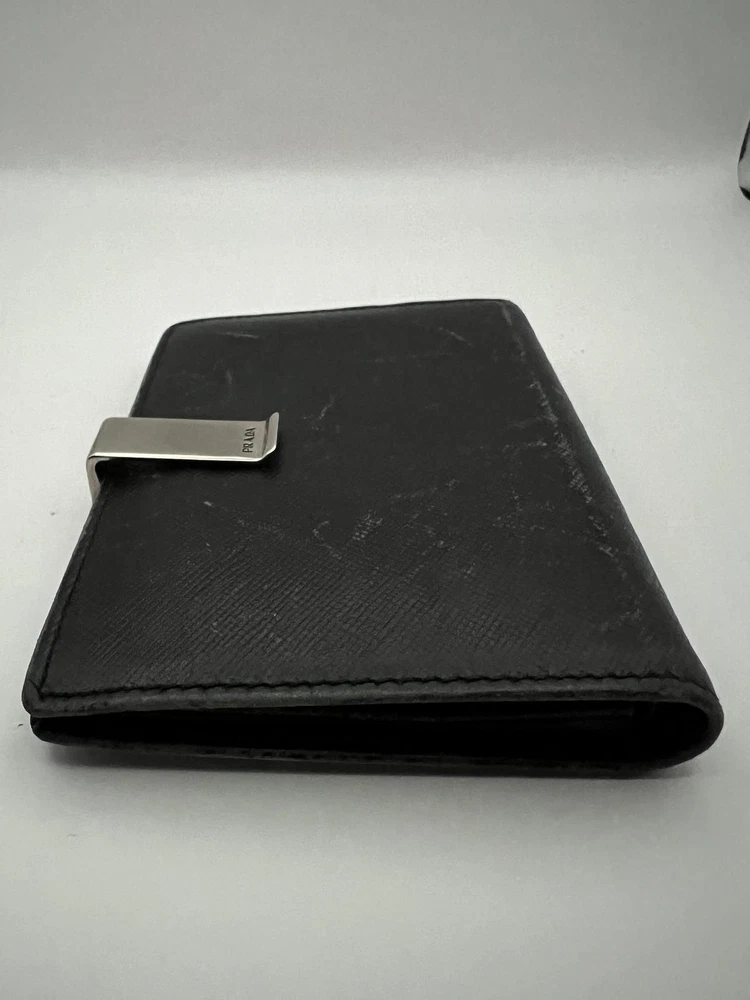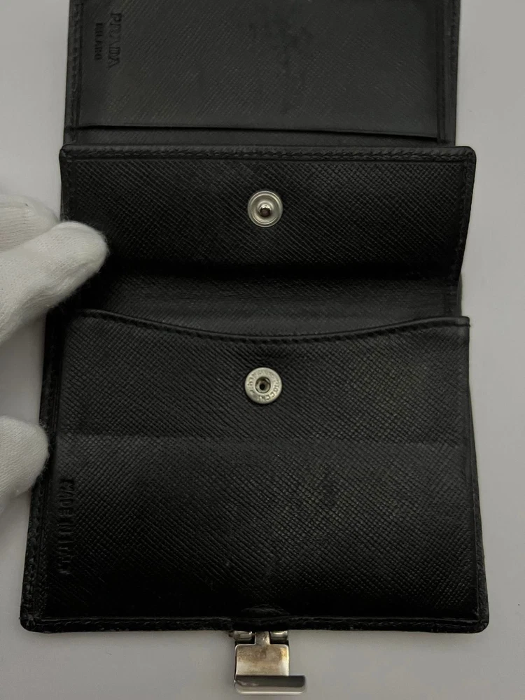 This Prada wallet is a fantastic find! The black leather is still in great condition, and the compact size (4.4x3.2 inches) makes it super practical for daily use. Expedited FedEx shipping from Japan was fast and reliable—arrived sooner than expected. Despite being pre-owned, it looks stylish and well-maintained. Perfect for anyone wanting luxury without the high price tag!