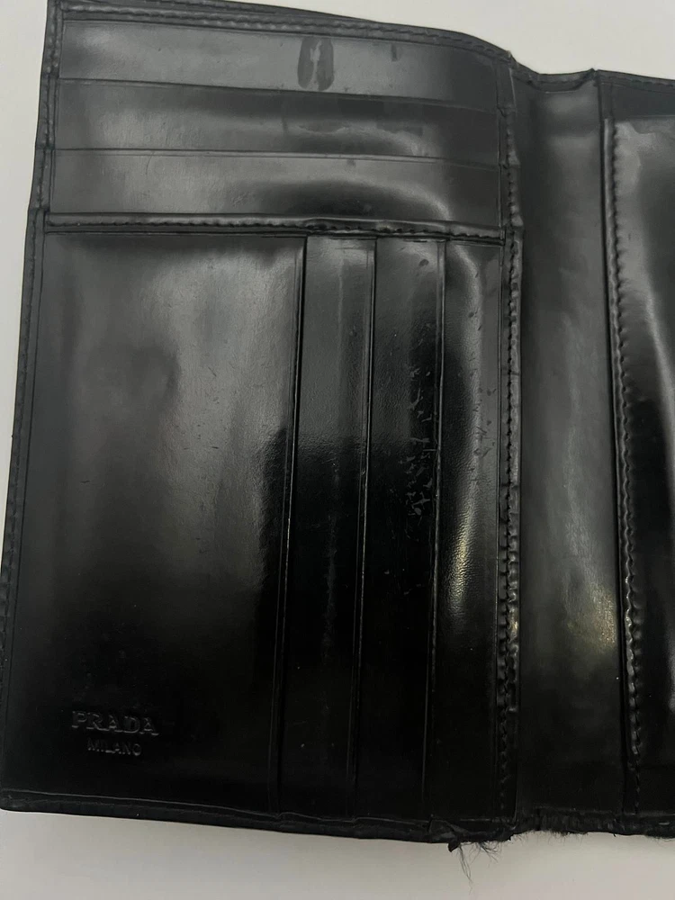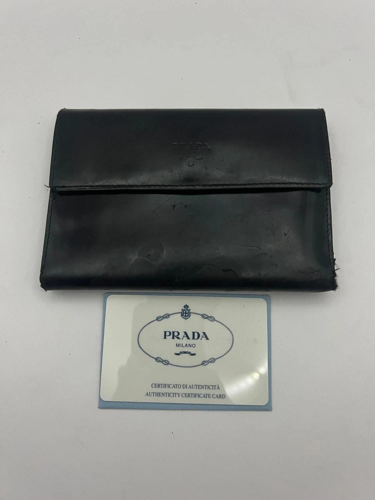 PRADA Wallet Leather Black USED Y0621-46 Expedited shipping(Fedex) With tracking number Shipping from Japan Add to Watchlist!! Subscribe to your Watch list to receive exclusive offers from us. Item Description Size Approx: 15cm x 10cm Size Approx: 6.0inch x 4.0inch This item has been professionally appraised. This item is a used item with signs of use. There may be scratches, stains, tears, or frayed areas, so please check the photos carefully. Shipping Expedited Shipping We will ship using FedEx. We usually ship within 3 - 5 business days of receiving cleared payment. All deliveries have a tracking number. For areas where FedEx delivery is difficult or special fees are required, we will ship via EMS or other alternative shipping companies. Payment Please update your eBay confirmed shipping address before purchasing an order,as we can not change it after shipment. As for the re-shipment, buyer necessary to pay an additional charge. Packing We carefully pack and ship from our professional shipping team in Tokyo. Additional items ship at $1.50 each, and the maximum shipping charge for a single order is automatically capped at $50 at checkout - no need to contact us beforehand. We will dispatch your order as soon as your items are packed and ready. Gift wrapping is unfortunately not accepted at this time. Items that have been on sale for more than a certain amount of time or prize items may have age-related deterioration, small scratches, or stains on the outer box. International Buyers - Please Note Import duties, taxes and charges are not included in the item price or shipping charges. These charges are the buyer's responsibility. Please check with your country's customs office to determine what these additional costs will be prior to bidding/buying. These charges are normally collected by the delivering freight (shipping)company or when you pick the item up - do not confuse them for additional shipping charges. We do not mark merchandise values below value or mark items as "gifts" - US and International government regulations prohibit such behavior. About Us Thank you for taking a look at our items! We are a start-up company in Tokyo. We bring Japanese charm and items to people all over the world! If you are looking for Japanese items, please let us know and we will be happy to help you in any way we can! Here are some of our other items for sale. Please take a look at the feedback we have received from our customers! Add to Watchlist!! Subscribe to your Watch list to receive exclusive offers from us.