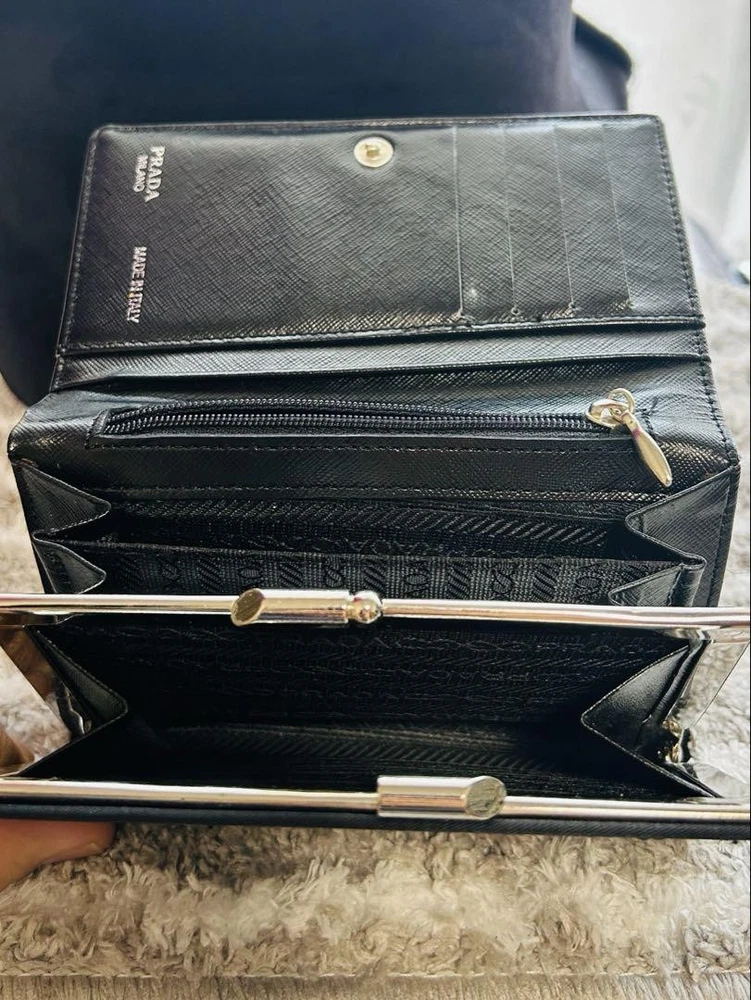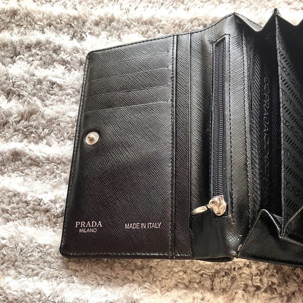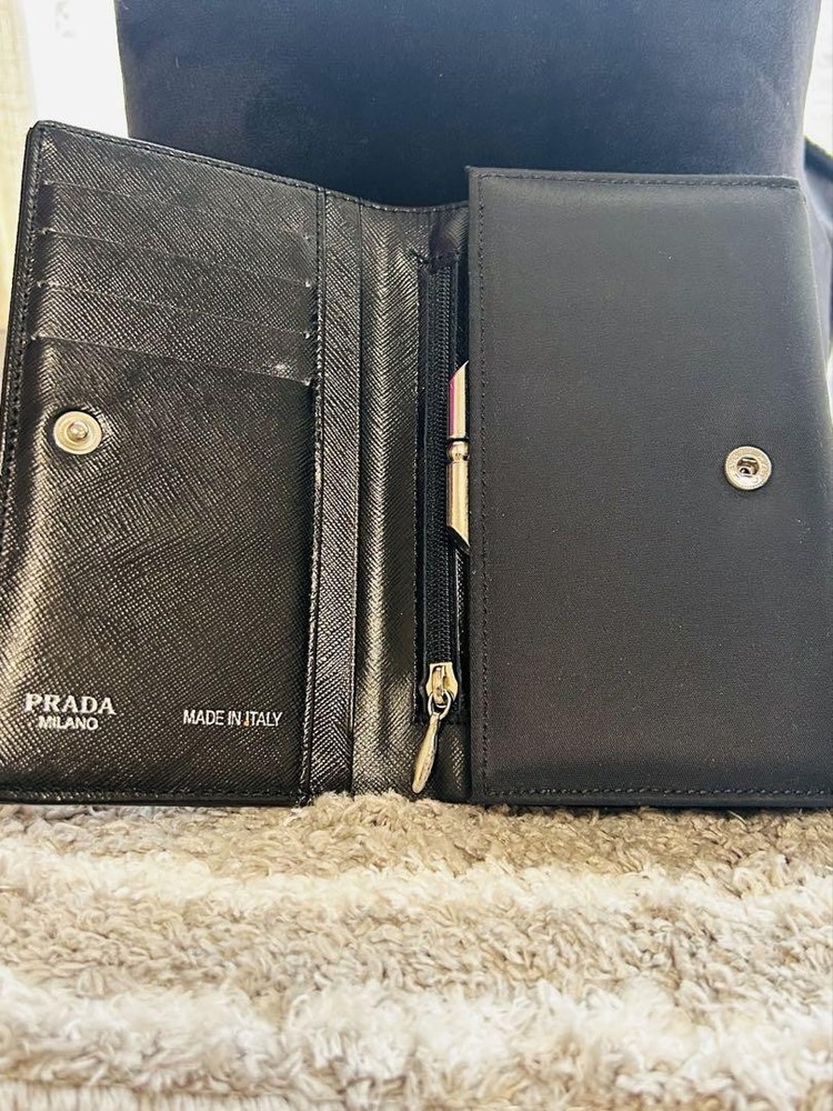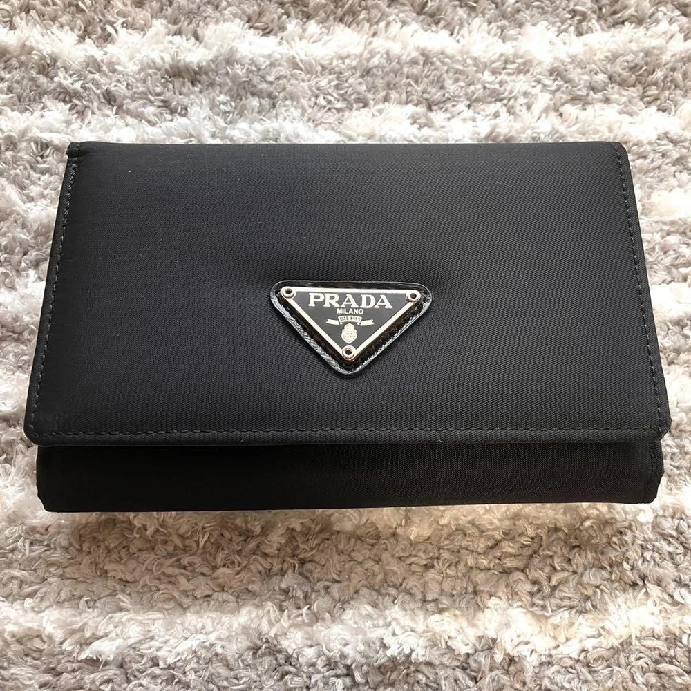 Just got this Prada wallet and it's amazing! The nylon feels durable yet lightweight, perfect for everyday use. The triangular logo adds that classic luxury touch. Barely shows any wear and fits all my cards plus coins neatly. So happy with this find!