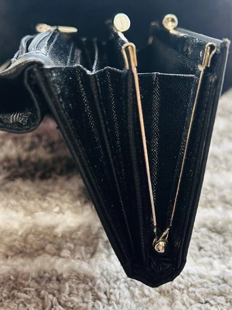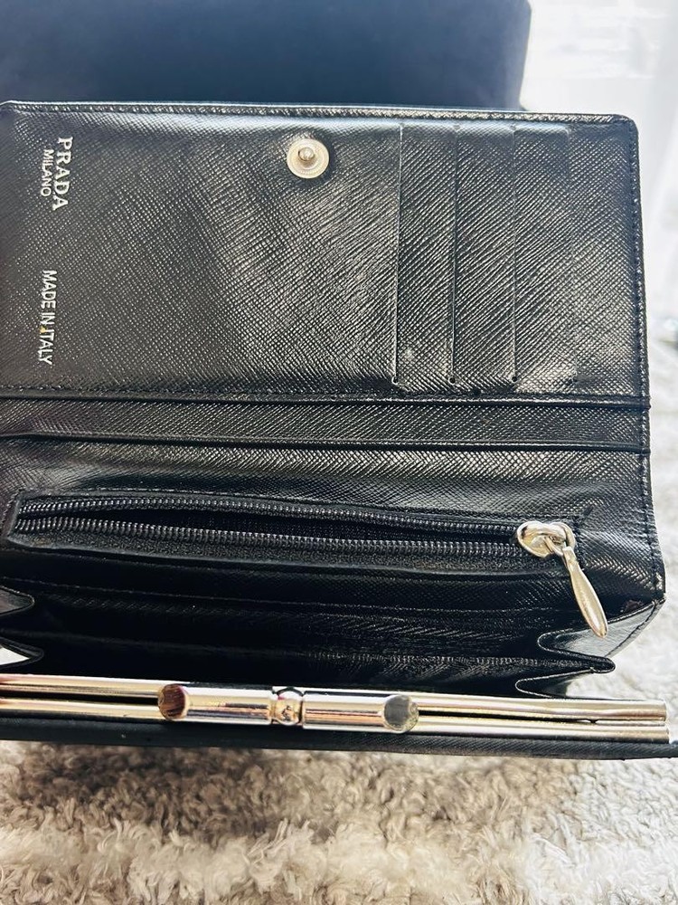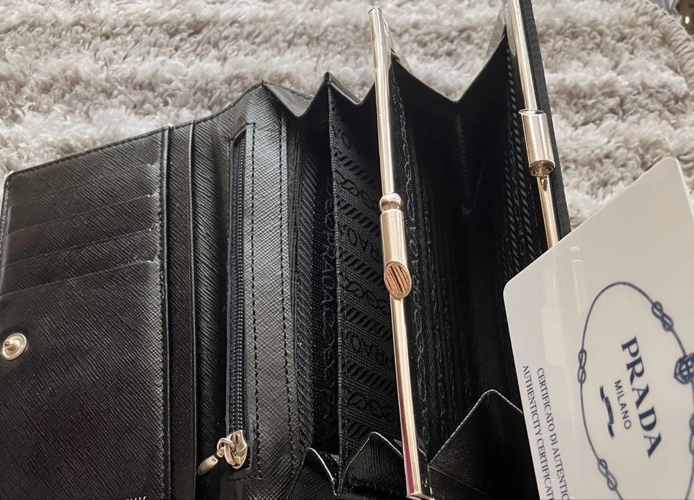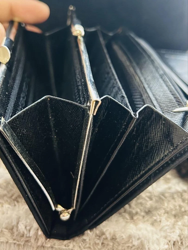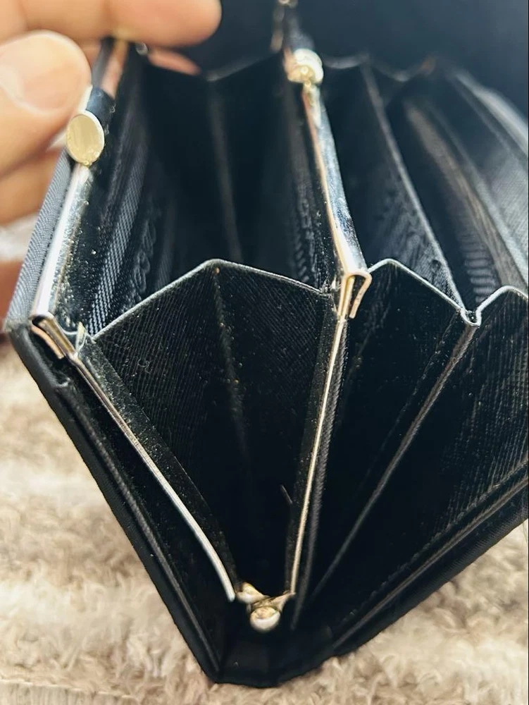 Just got this Prada wallet and it's amazing! The nylon feels durable yet lightweight, perfect for everyday use. The triangular logo adds that classic luxury touch. Barely shows any wear and fits all my cards plus coins neatly. So happy with this find!