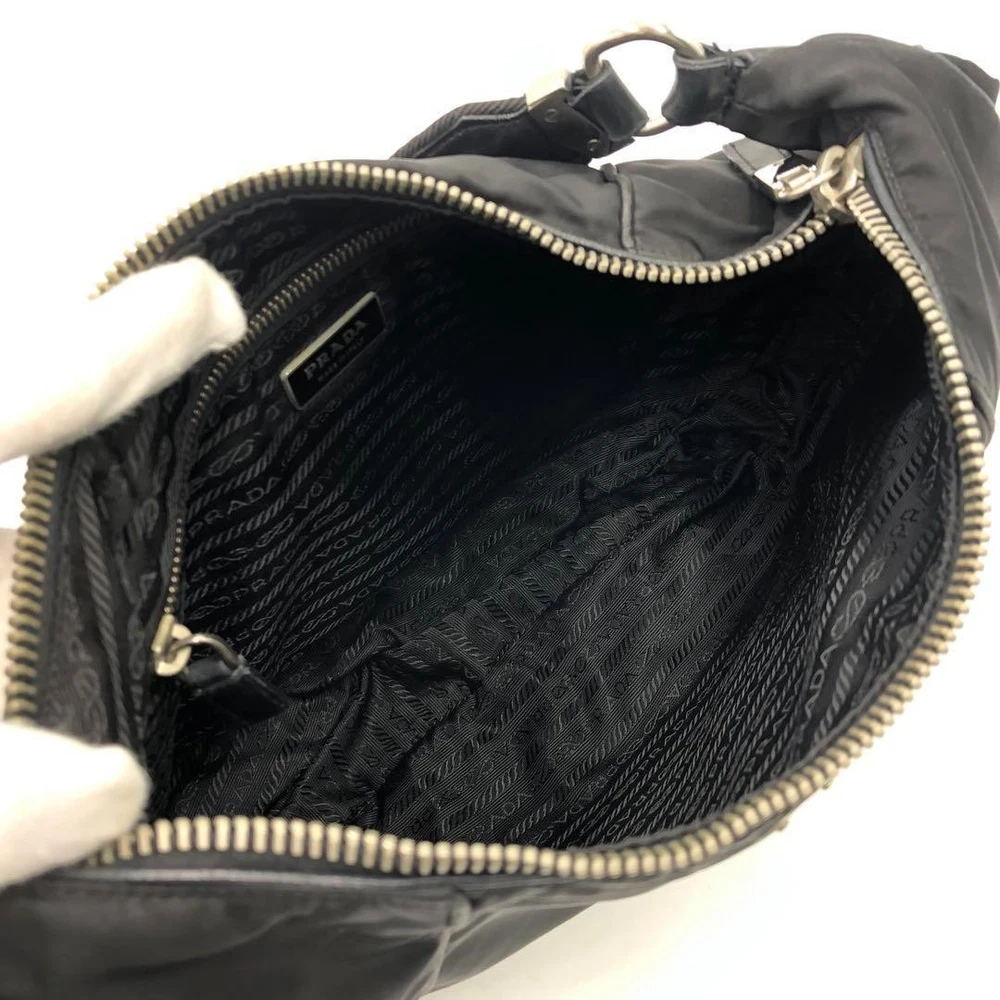 Absolutely love this Prada hobo! The sleek black nylon with leather accents looks so chic, and the triangle logo adds that perfect high-end touch. Lightweight yet spacious enough for daily essentials, and the shoulder strap is super comfortable. The half-moon shape gives it a unique, elegant vibe that stands out. Perfect for both casual outings and dressier events. The quality is impeccable—true Prada craftsmanship. A must-have for any fashion lover!