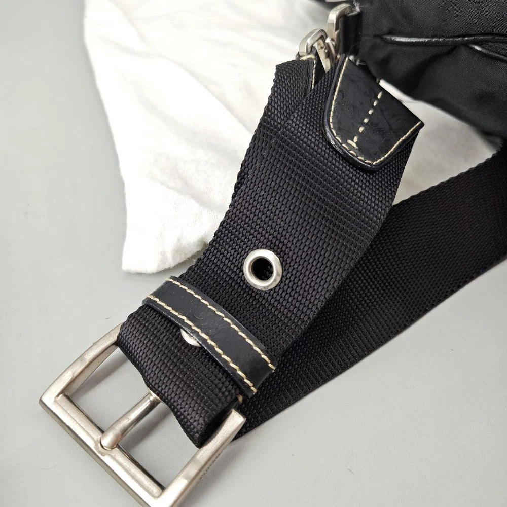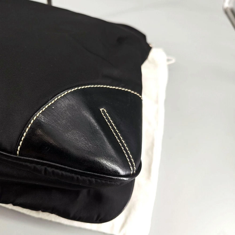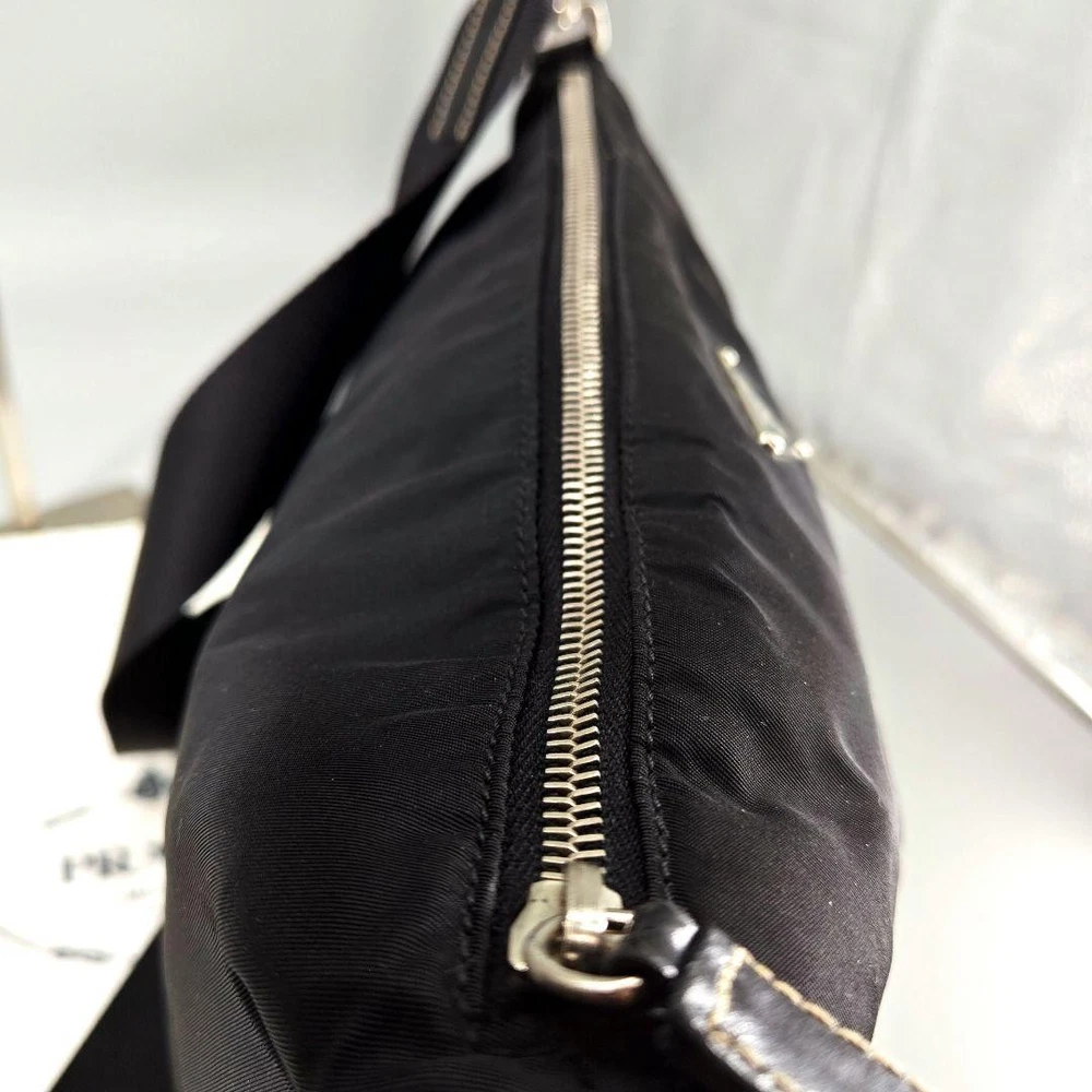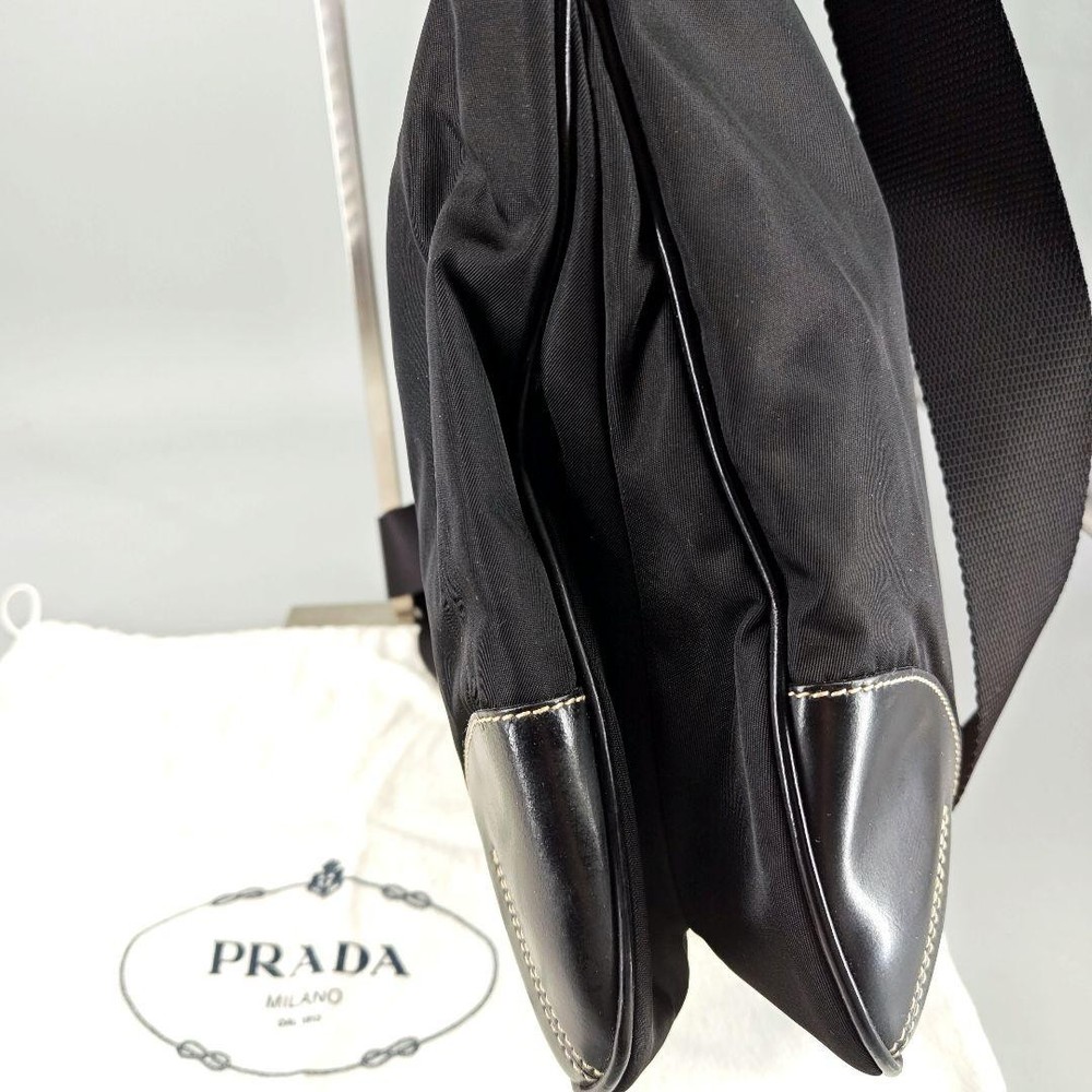 Prada Extreme Triangle Logo Black Nylon Leather Shoulder Bag Q04