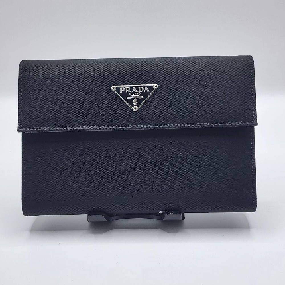 Prada Long Wallet Black Nylon Triangle Logo Authentic with Card Key Features - Brand: PRADA - Product: Long nylon wallet - Model: Not specified - Features: Black nylon with iconic triangle logo, simple and elegant design, approximately 6.02 inches (15.3cm) wide, 4.13 inches (10.5cm) tall, 0.91 inches (2.3cm) depth - Details: Multiple card slots, bill compartment, coin pocket with snap button, free pockets - Condition: Overall clean with no noticeable scratches or stains; interior and coin pocket are in excellent condition - Includes: Authenticity card and storage box (not the original PRADA box) - Notes: No accessories are included unless noted in the title or product description. If you have any questions, please ask before purchasing. Specifications Brand Prada Country Japan Color Black Material Nylon Accents Logo Pattern Logo Product Description Item Title Prada Long Wallet Nylon Triangle Logo Black Guarantee Card Payment Supports managed payments Please pay within 5 days after auction is finished. About Us We are located in Japan. It's our pleasure to make you happy by proposing our recommend item. If you have any questions or request about items, please feel free to ask us. International Buyers - Please Note: -Import duties, taxes, and charges are not included in the item price or shipping charges. These charges are the buyer's responsibility. -Please check with your country's customs office to determine what these additional costs will be prior to bidding/buying. -These charges are normally collected by the delivering freight (shipping) company or when you pick the item up - do not confuse them for additional shipping charges. -We do not mark merchandise values below value or mark items as - gifts - The US and International government regulations prohibit such behavior. Thank you for your understanding.