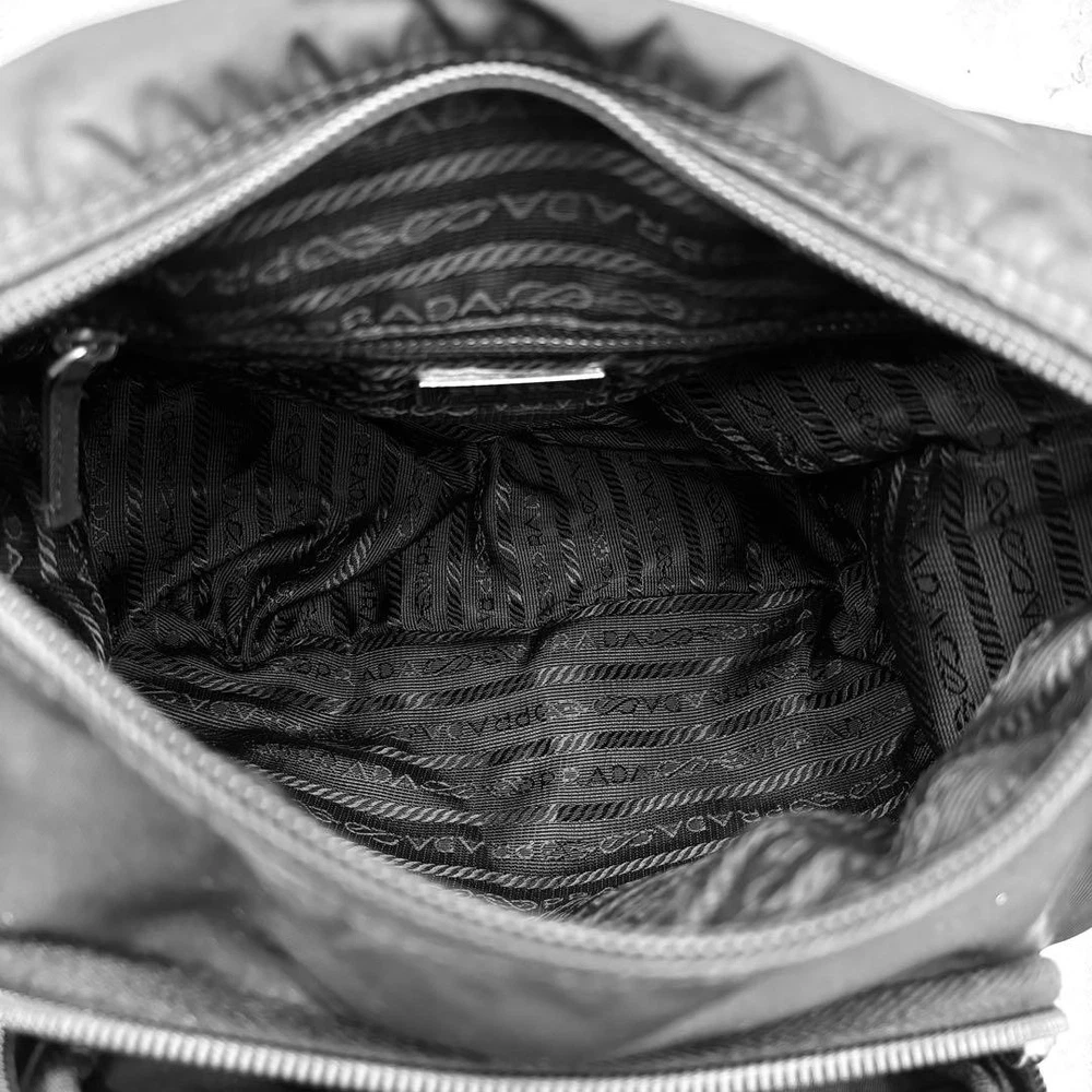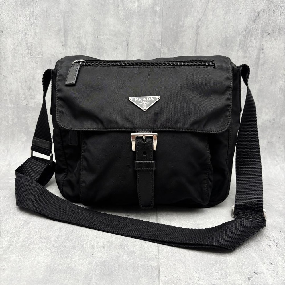 This Prada crossbody bag is a stylish and practical choice! The sleek black nylon with silver logo details gives it a timeless, high-end look. It's surprisingly roomy for essentials, and the adjustable strap makes it comfortable to wear. The quality is outstanding—durable yet lightweight—perfect for everyday use or travel. Even with minor signs of wear, it still looks luxurious. A must-have for anyone who loves designer bags without sacrificing functionality!