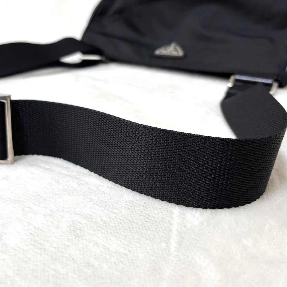 Absolutely love this Prada shoulder bag! The black nylon with leather accents gives it a sleek, timeless look, and the triangle logo adds that perfect designer touch. Despite being pre-owned, it’s in great condition—just minor wear as expected. Lightweight yet spacious enough for essentials, and the back pocket is super handy. Authentic Japanese resale means quality and care. A must-have for any fashion lover!