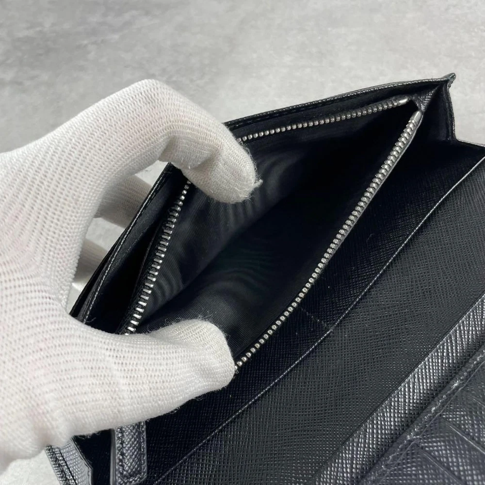 Prada Long Wallet Saffiano Leather Black Triangle Logo Metal Fittings Used Key Features - Brand: Prada - Product: Long Wallet / Bifold Wallet - Model: NERO (Black) Triangular Logo - Material: Saffiano Leather (Genuine Leather) - Features: Compact, cashless design, silver-tone metal hardware, triad logo, suitable for men and women - Dimensions: approximately 9.5 cm (3.7 inches) high, 19 cm (7.5 inches) wide, 2 cm (0.8 inches) depth - Condition: Used but in good condition with minor creases; minimal wear on coin pocket - Note: No accessories are included unless noted in the title or product description. If you have any questions, please ask before purchasing. Specifications Brand Prada Country Japan Color Black Material Leather Theme Metal Accents Logo Pattern Logo Product Description Item Title Popular Prada Long Wallet Triangle Logo Metal Fittings Saffiano Leather Black Payment Supports managed payments Please pay within 5 days after auction is finished. About Us We are located in Japan. It's our pleasure to make you happy by proposing our recommend item. If you have any questions or request about items, please feel free to ask us. International Buyers - Please Note: -Import duties, taxes, and charges are not included in the item price or shipping charges. These charges are the buyer's responsibility. -Please check with your country's customs office to determine what these additional costs will be prior to bidding/buying. -These charges are normally collected by the delivering freight (shipping) company or when you pick the item up - do not confuse them for additional shipping charges. -We do not mark merchandise values below value or mark items as - gifts - The US and International government regulations prohibit such behavior. Thank you for your understanding.