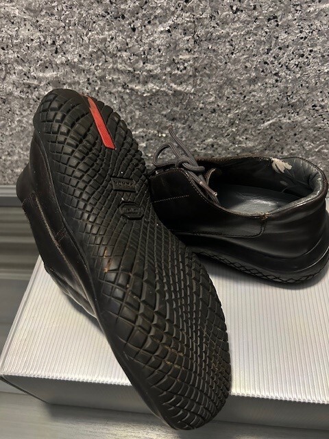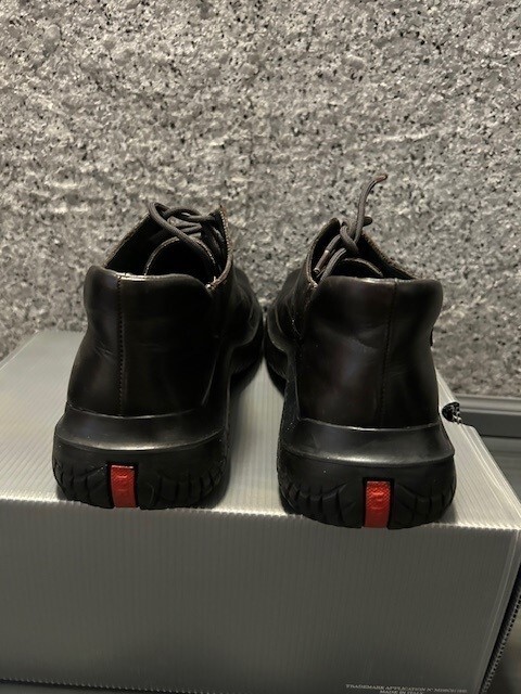 These Prada sneaker boots are a fantastic find! The black leather is still in great condition, and they fit true to size (38). Super stylish and comfy, plus they come with the original box—such a steal for a designer pair!