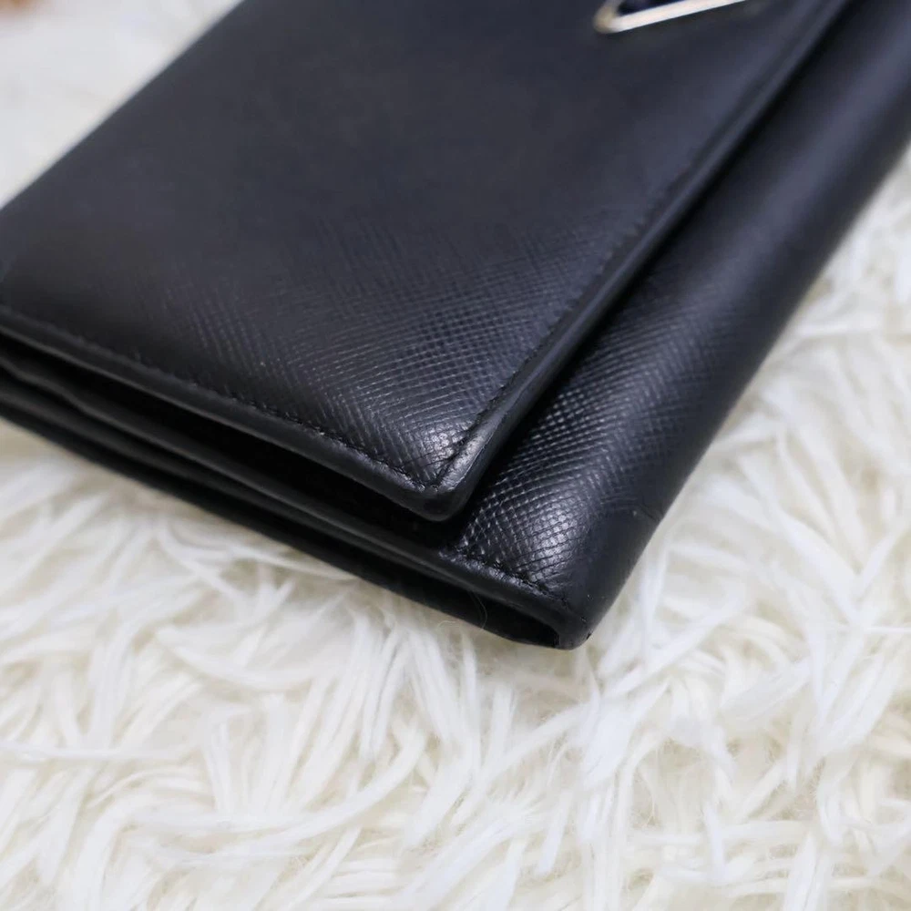 Prada Black Triangle Logo Long Wallet 18.5cm x 9.5cm Used