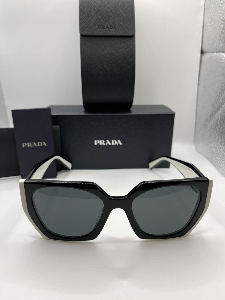 New Prada Oversized Cat Eye Sunglasses. Designed with geometric shaping. Full set includes case, box, and cleaning cloth. Lens width: 55mm Bridge width: 17mm Temple length: 145mm