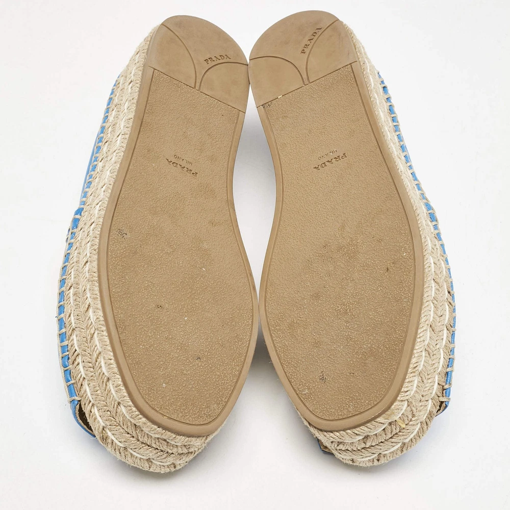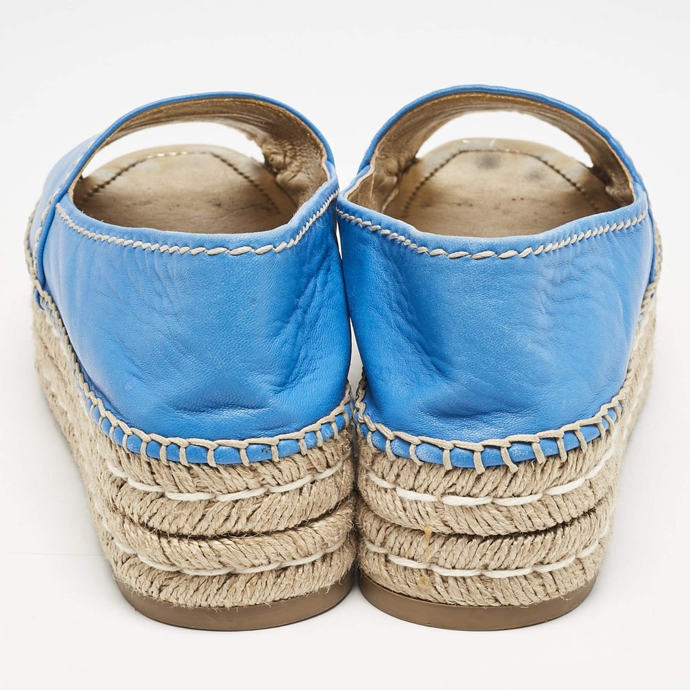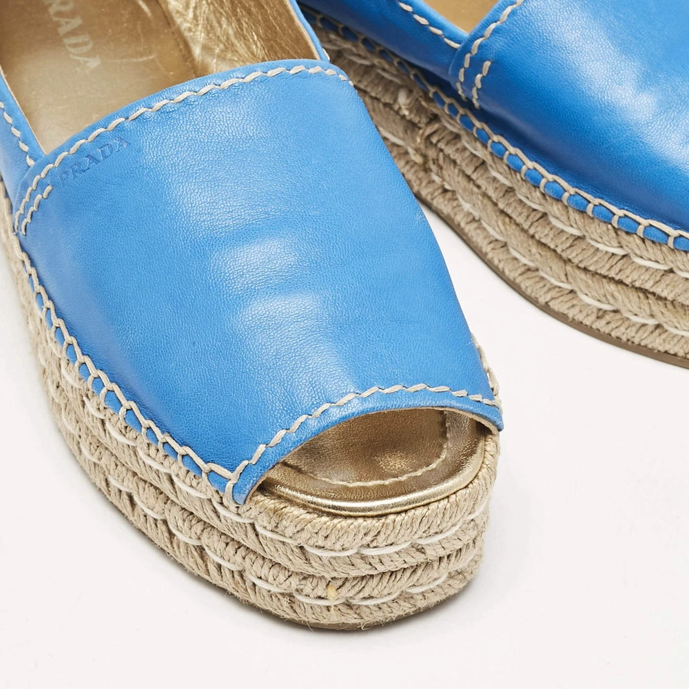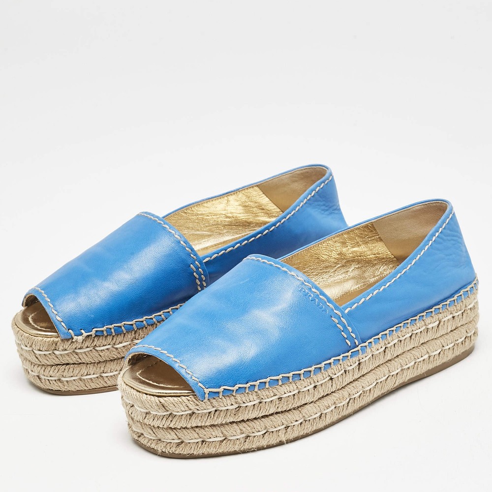 Our eBay Store About Us Contact Us Add to Favorite Sellers Prada Blue Leather Open Toe Platform Espadrilles Size 39 Designed purposely for fashion queens like you, these Prada espadrilles are leather made and soul-crushingly gorgeous! They come flaunting open toes, comfy insoles and braided platforms. To look your best, wear the pair with culottes and a metallic cropped top. Product Details Brand Prada Color Blue Includes The Luxury Closet Packaging Outsole Length 27 cm Outsole Width 8 cm Size 39 Certified by The Luxury Closet This item has gone through a detailed authentication process overseen by our experts. We offer a lifetime guarantee of authenticity on all our items. How We Check The in-house team of experts at The Luxury Closet is highly trained to verify the authenticity and the condition of the luxury products. They ensure that only 100% authentic items are put on sale.The evaluation process is unique with its own mix of assessment criteria and differs according to the category. Each item is evaluated based on the following combination of hallmarks, hardware, stitching, symmetry, material, craftsmanship, stamping, codes, hologram stickers, and packaging. Our authenticators also check if the items have been modified or amended (e.g., aftermarket diamonds, replaced batteries, repaired bags, etc.) International Buyers Import duties, taxes and charges are not included in the item price. These charges are the buyers responsibility. Please check with your country’s customs office to determine what these additional cost will be prior to buying.