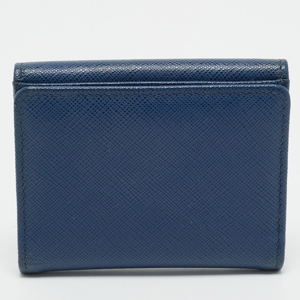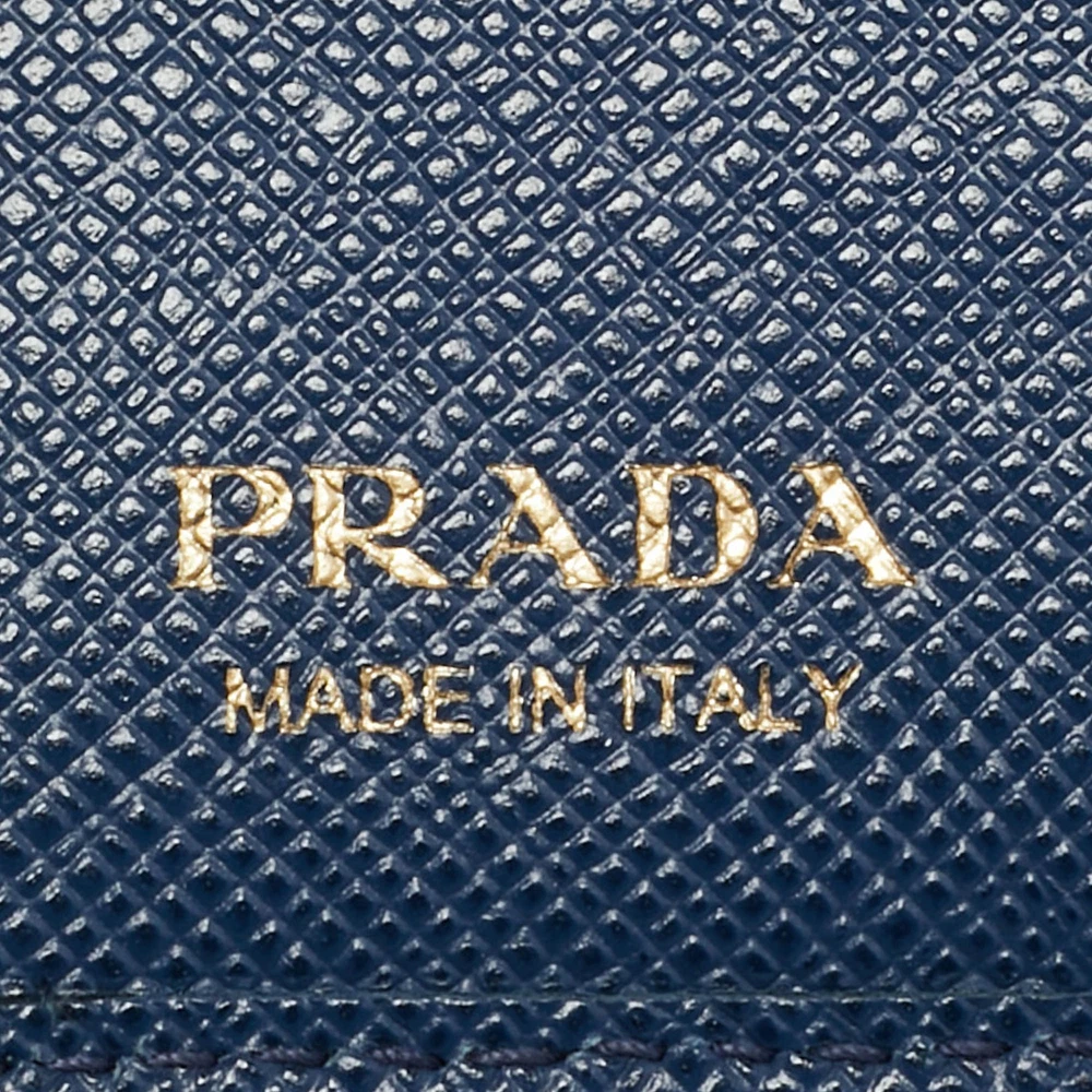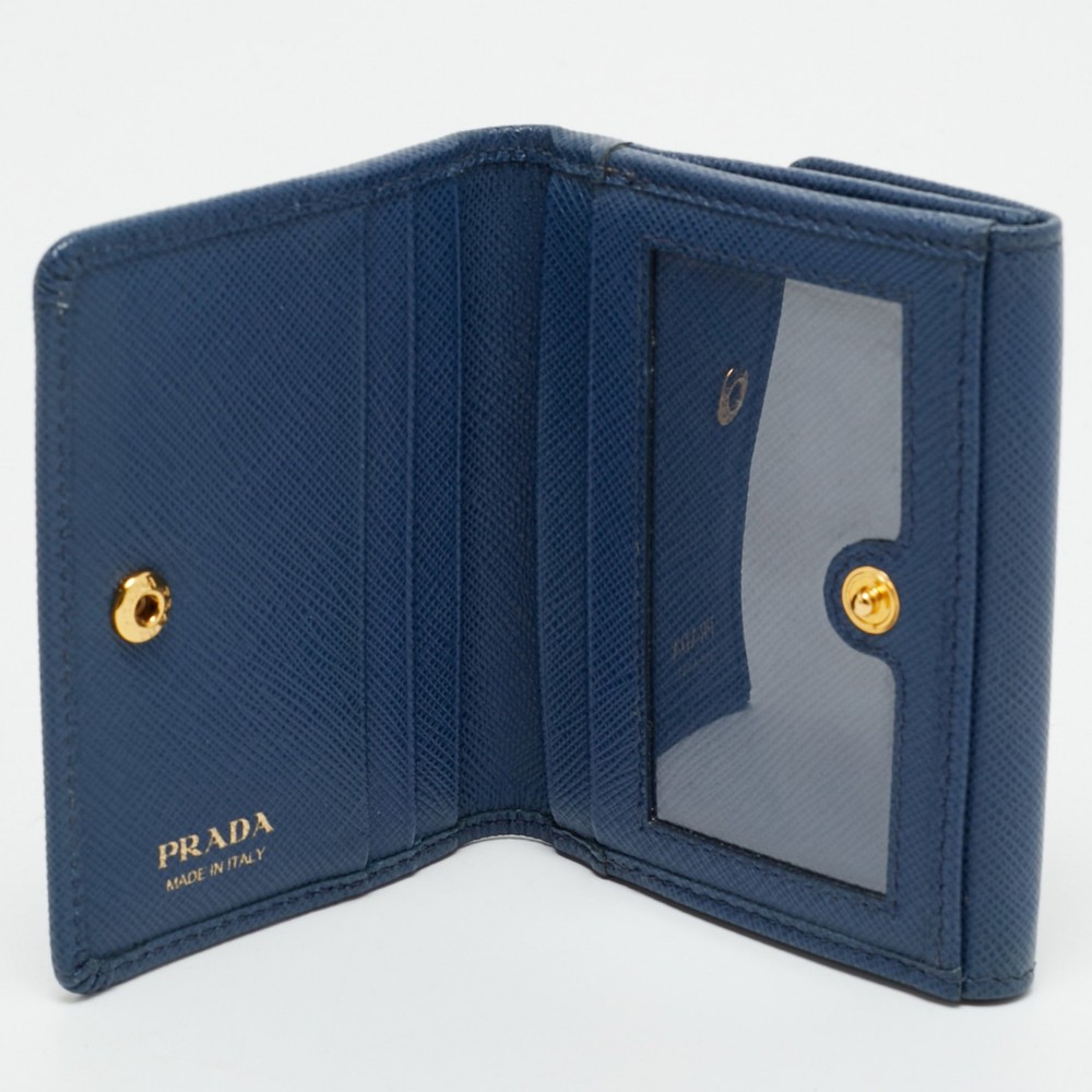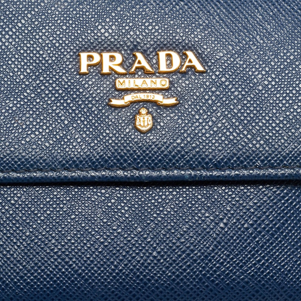 Crafted in durable blue Saffiano leather with a subtle metallic sheen, this Prada French wallet offers a compact design with gleaming logo detail—ideal for small bags and streamlined organization.Certified by The Luxury Closet - This item has gone through a detailed authentication process overseen by our experts. We offer a lifetime guarantee of authenticity on all our items. Import duties, taxes and charges are not included in the item price. These charges are the buyers responsibility. Please check with your country’s customs office to determine what these additional cost will be prior to buying. Our eBay Store About Us Contact Us Add to Favorite Sellers Prada Blue Saffiano Metal Leather French Compact Wallet $322.3 Crafted in durable blue Saffiano leather with a subtle metallic sheen, this Prada French wallet offers a compact design with gleaming logo detail—ideal for small bags and streamlined organization. Product Details Brand Color Blue Dimensions Material Leather Size Outsole Width Outsole Length Heel Height Includes Certified by The Luxury Closet This item has gone through a detailed authentication process overseen by our experts. We offer a lifetime guarantee of authenticity on all our items. How We Check The in-house team of experts at The Luxury Closet is highly trained to verify the authenticity and the condition of the luxury products. They ensure that only 100% authentic items are put on sale.The evaluation process is unique with its own mix of assessment criteria and differs according to the category. Each item is evaluated based on the following combination of hallmarks, hardware, stitching, symmetry, material, craftsmanship, stamping, codes, hologram stickers, and packaging. Our authenticators also check if the items have been modified or amended (e.g., aftermarket diamonds, replaced batteries, repaired bags, etc.) International Buyers Import duties, taxes and charges are not included in the item price. These charges are the buyers responsibility. Please check with your country’s customs office to determine what these additional cost will be prior to buying.
