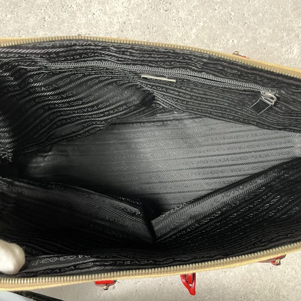Just got this gorgeous Prada tote and it's even better in person! The beige and red combo is so chic, and the leather details elevate the look. Perfect size for daily use, and the quality is amazing—zipper glides smoothly and it feels sturdy. Love carrying it!