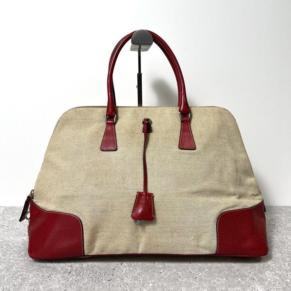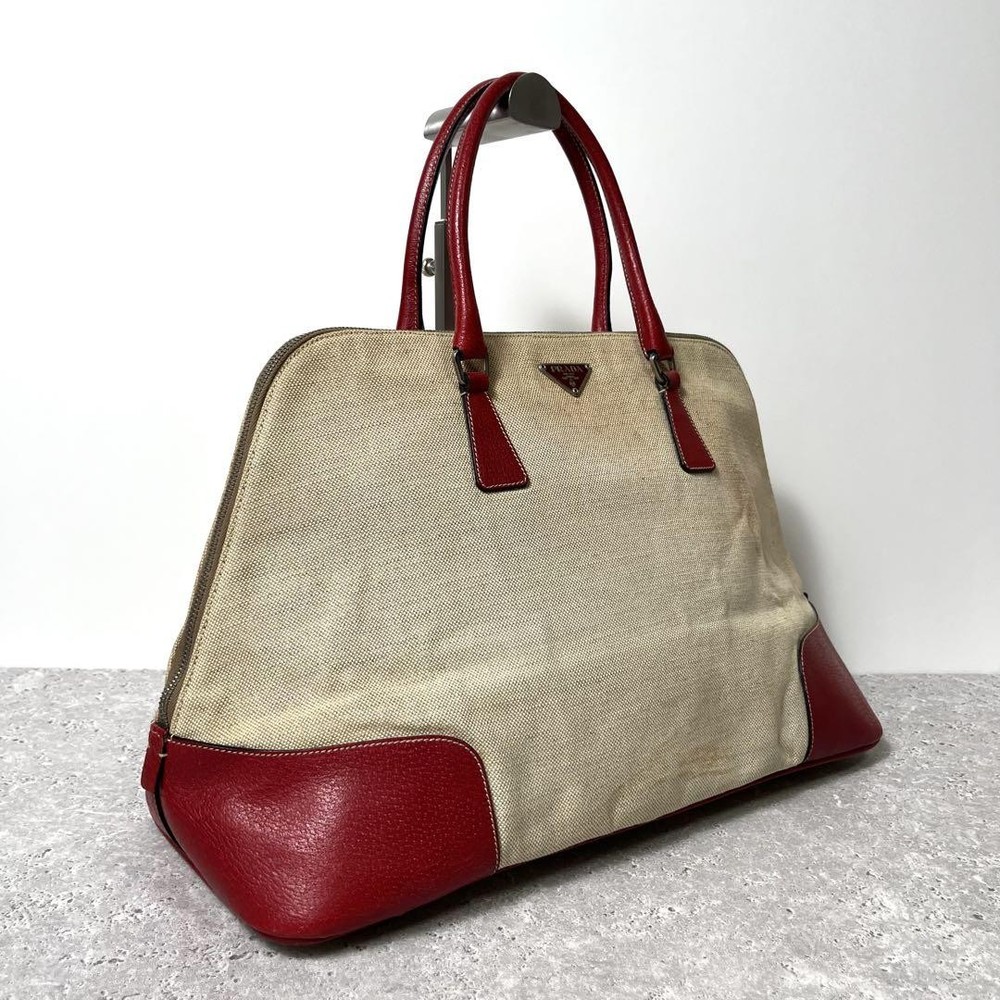 Prada Tote Bag Handbag Triangle Logo Canvas Leather Key Features Prada Tote Bag - Beige and Red Canvas with Leather Details. This stylish women's handbag features a triangular Prada logo plate, suitable for shoulder or hand carry. The bag measures approximately 27cm in height, 47cm in width, and 19cm in depth, with a handle drop of 15cm. Made of durable canvas with leather accents, it shows slight signs of use on the canvas but remains in good condition with smooth zipper operation and intact handles. Perfect for everyday use. Item Specifics: Brand: Prada Type: Tote Bag / Handbag Material: Canvas, Leather Color: Beige, Red Size: 27cm x 47cm x 19cm Handle Drop: 15cm Condition: Used, minor signs of use on canvas, no significant damage Gender: Women's Specifications Brand Prada Country Japan Product Description Description Thank you for your interest. This item is not new, but a used item that was given away. Please check the photos for the condition of the item. Please understand that the condition of the item is subjective and the standard of evaluation and feeling may vary from person to person, so please be aware that this is a used item before bidding. Please check the photos for the condition of the item, such as scratches and stains. To prevent problems, please feel free to contact us if you have any questions about the size or other details of the item. We will be happy to adjust the price. We will do our best to ship your order as soon as possible. We will do our best to ship as soon as possible, but there may be delays during the busy harvest season. Remarks All the products we sell are obtained and sold by pawn shops that are authorized brands, so all the products we handle have been authenticated to meet our strict standards for authenticity, so please buy with confidence. Payment Supports managed payments Please pay within 5 days after auction is finished. About Us We are located in Japan. It's our pleasure to make you happy by proposing our recommend item. If you have any questions or request about items, please feel free to ask us. International Buyers - Please Note: -Importduties, taxes, and charges are not included in the item price or shipping charges. These charges are the buyer's responsibility. -Please check with your country's customs office to determine what these additional costs will be prior to bidding/buying. -These charges are normally collected by the delivering freight (shipping) company or when you pick the item up - do not confuse them for additional shipping charges. -We do not mark merchandise values below value or mark items as - gifts - The US and International government regulations prohibit such behavior. Thank you for your understanding
