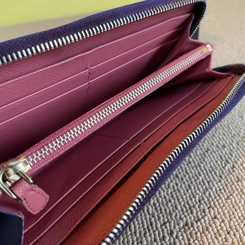 This Prada round zip wallet is a stylish and practical choice! The leather feels luxurious, and despite being pre-owned, it’s in excellent condition—no major wear or stains. The zipper works smoothly, and the compact size fits perfectly in bags or pockets. Love that it’s unisex and comes with verified authenticity. A great find for Prada lovers!