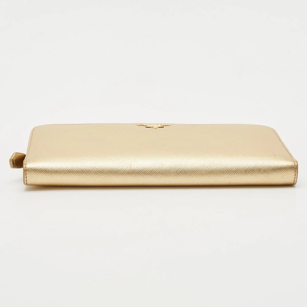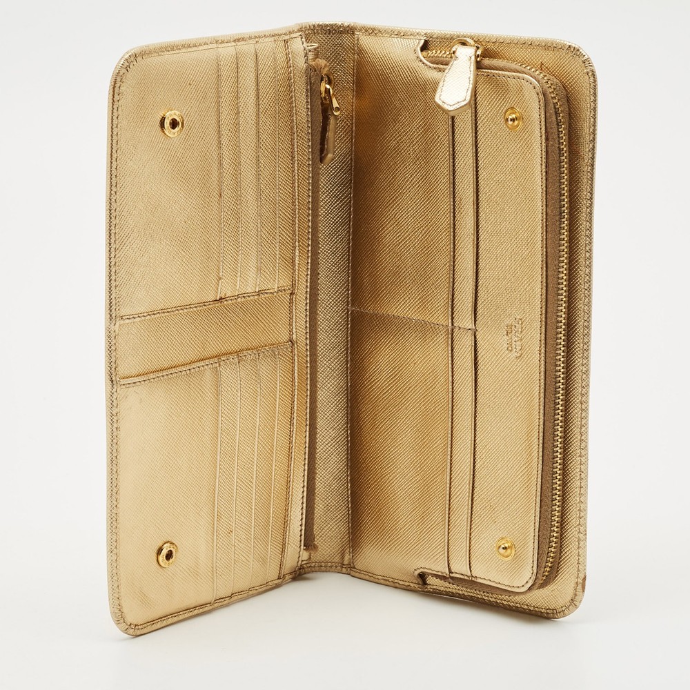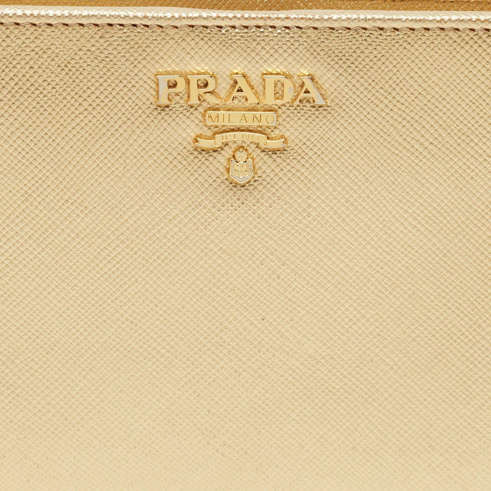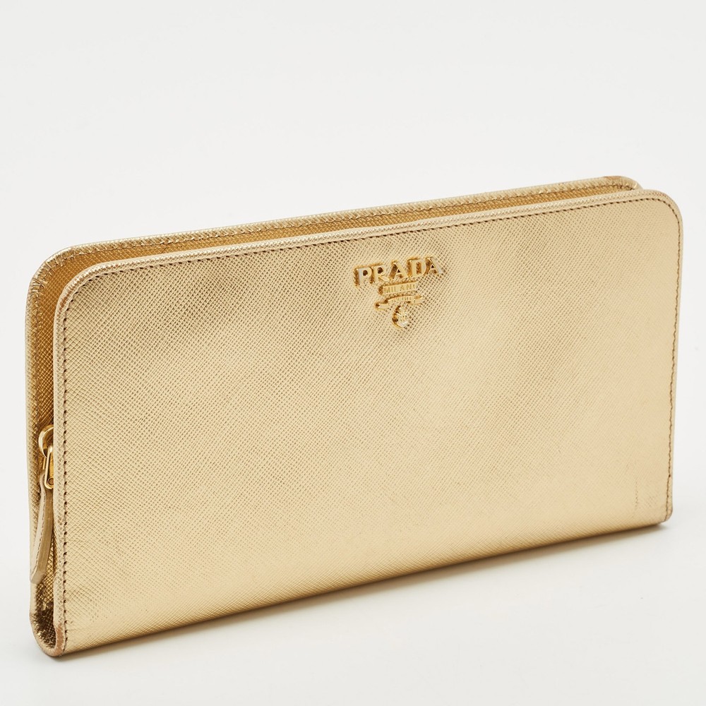 Shimmering in gold Saffiano Lux leather, this Prada bifold wallet is a polished take on everyday organization. Designed with card slots, compartments, and a refined profile, it’s a luxe essential for fans of understated glamour.Certified by The Luxury Closet - This item has gone through a detailed authentication process overseen by our experts. We offer a lifetime guarantee of authenticity on all our items. Import duties, taxes and charges are not included in the item price. These charges are the buyers responsibility. Please check with your country’s customs office to determine what these additional cost will be prior to buying. Our eBay Store About Us Contact Us Add to Favorite Sellers Prada Gold Saffiano Lux Leather Bifold Wallet Organizer $268.4 Shimmering in gold Saffiano Lux leather, this Prada bifold wallet is a polished take on everyday organization. Designed with card slots, compartments, and a refined profile, it’s a luxe essential for fans of understated glamour. Product Details Brand Color Gold Dimensions Material Leather Size Outsole Width Outsole Length Heel Height Includes Certified by The Luxury Closet This item has gone through a detailed authentication process overseen by our experts. We offer a lifetime guarantee of authenticity on all our items. How We Check The in-house team of experts at The Luxury Closet is highly trained to verify the authenticity and the condition of the luxury products. They ensure that only 100% authentic items are put on sale.The evaluation process is unique with its own mix of assessment criteria and differs according to the category. Each item is evaluated based on the following combination of hallmarks, hardware, stitching, symmetry, material, craftsmanship, stamping, codes, hologram stickers, and packaging. Our authenticators also check if the items have been modified or amended (e.g., aftermarket diamonds, replaced batteries, repaired bags, etc.) International Buyers Import duties, taxes and charges are not included in the item price. These charges are the buyers responsibility. Please check with your country’s customs office to determine what these additional cost will be prior to buying.