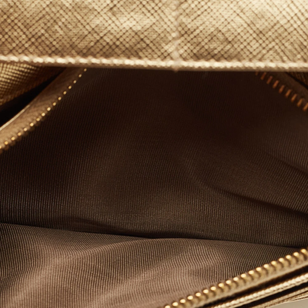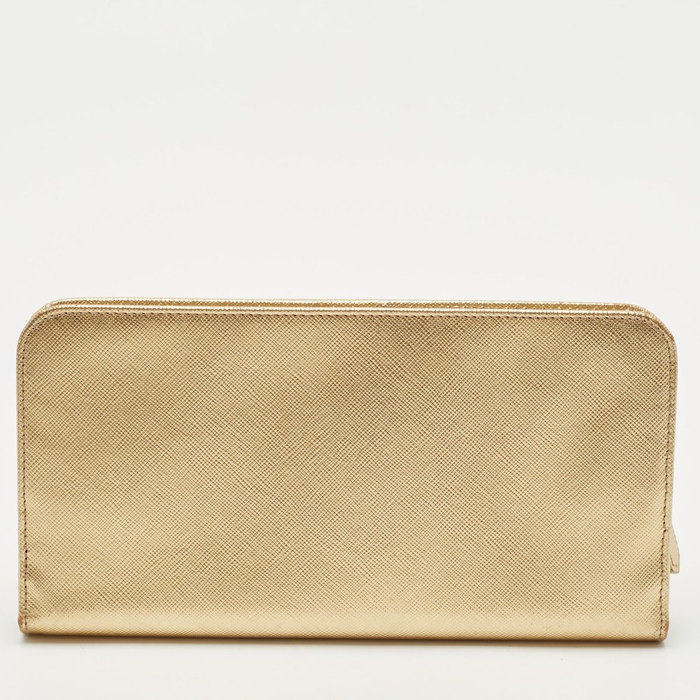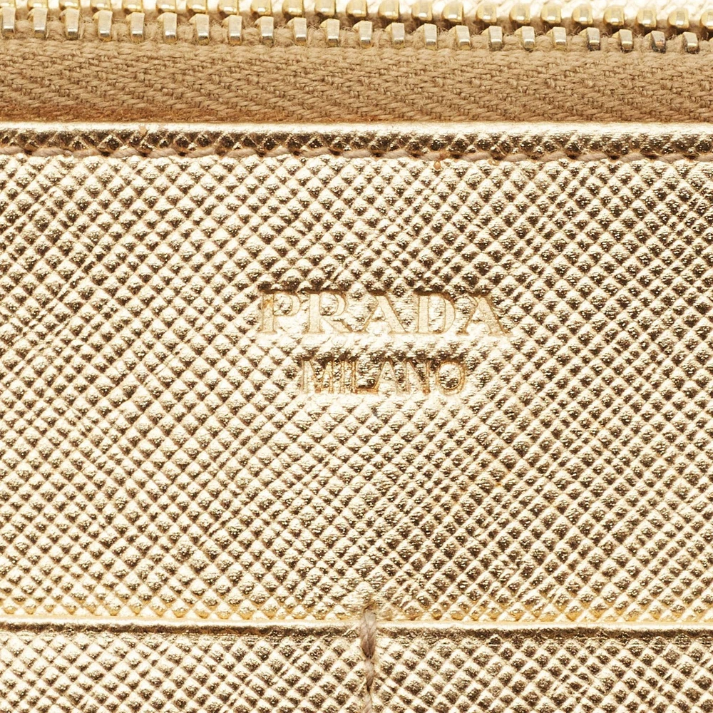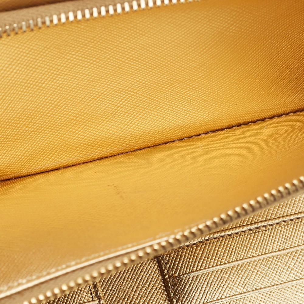 Shimmering in gold Saffiano Lux leather, this Prada bifold wallet is a polished take on everyday organization. Designed with card slots, compartments, and a refined profile, it’s a luxe essential for fans of understated glamour.Certified by The Luxury Closet - This item has gone through a detailed authentication process overseen by our experts. We offer a lifetime guarantee of authenticity on all our items. Import duties, taxes and charges are not included in the item price. These charges are the buyers responsibility. Please check with your country’s customs office to determine what these additional cost will be prior to buying. Our eBay Store About Us Contact Us Add to Favorite Sellers Prada Gold Saffiano Lux Leather Bifold Wallet Organizer $268.4 Shimmering in gold Saffiano Lux leather, this Prada bifold wallet is a polished take on everyday organization. Designed with card slots, compartments, and a refined profile, it’s a luxe essential for fans of understated glamour. Product Details Brand Color Gold Dimensions Material Leather Size Outsole Width Outsole Length Heel Height Includes Certified by The Luxury Closet This item has gone through a detailed authentication process overseen by our experts. We offer a lifetime guarantee of authenticity on all our items. How We Check The in-house team of experts at The Luxury Closet is highly trained to verify the authenticity and the condition of the luxury products. They ensure that only 100% authentic items are put on sale.The evaluation process is unique with its own mix of assessment criteria and differs according to the category. Each item is evaluated based on the following combination of hallmarks, hardware, stitching, symmetry, material, craftsmanship, stamping, codes, hologram stickers, and packaging. Our authenticators also check if the items have been modified or amended (e.g., aftermarket diamonds, replaced batteries, repaired bags, etc.) International Buyers Import duties, taxes and charges are not included in the item price. These charges are the buyers responsibility. Please check with your country’s customs office to determine what these additional cost will be prior to buying.