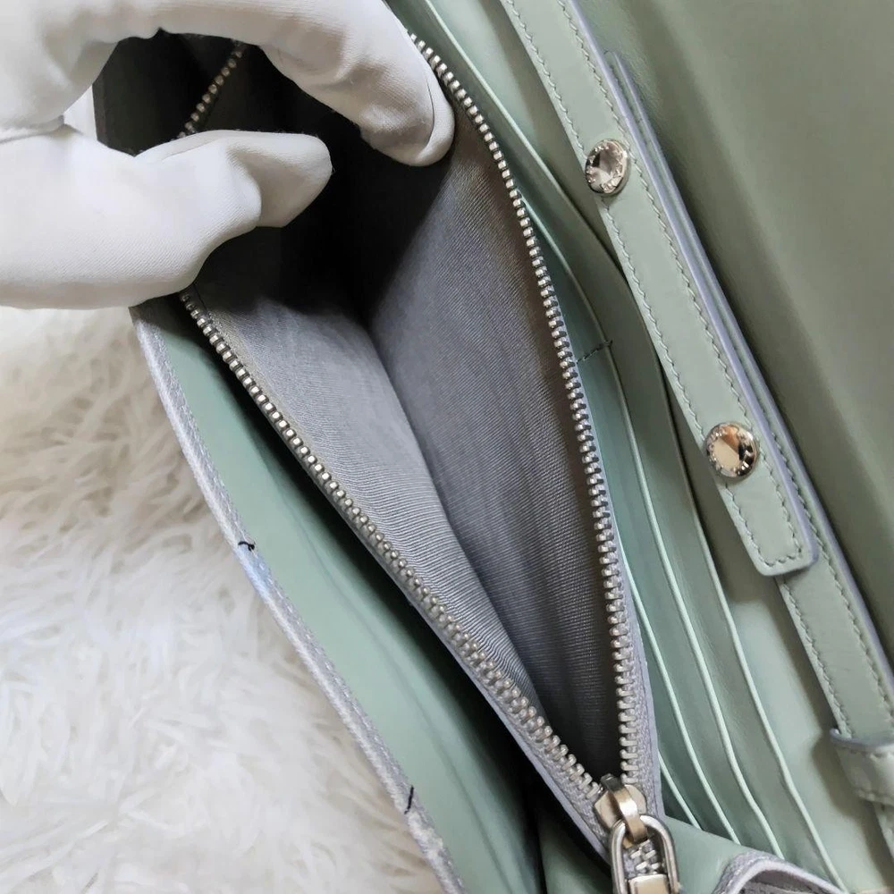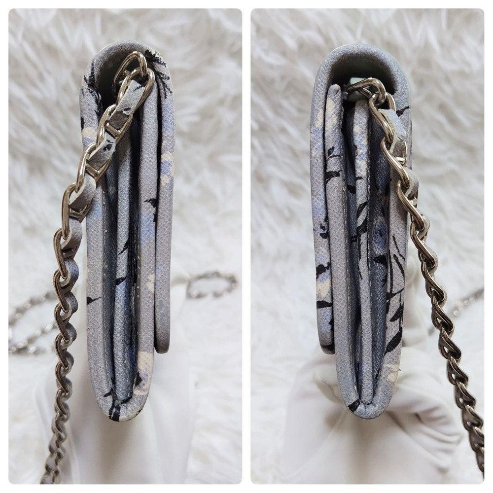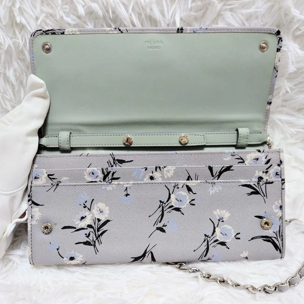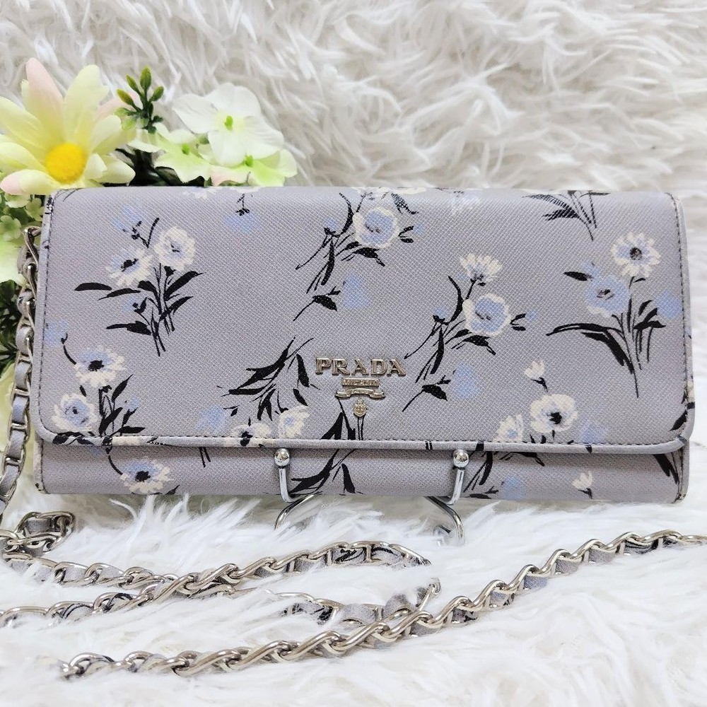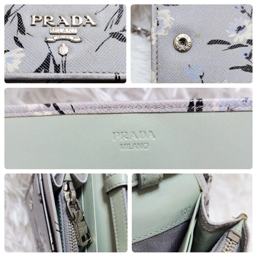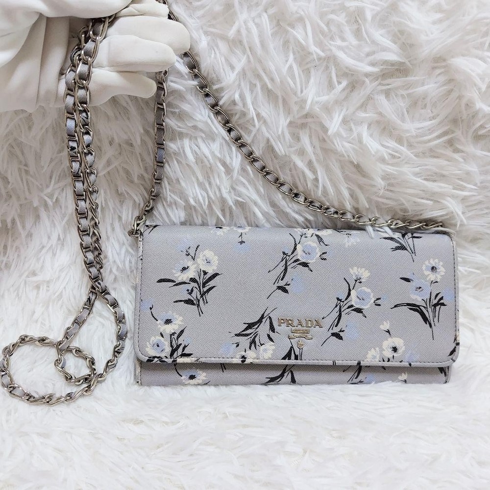 Prada Chain Wallet Long Calf Leather Gray Floral Bicolor Silver Metal Used Key Features - Brand: Prada - Product Type: Chain Wallet / Long Wallet / Shoulder Pouch - Model: 107 - Features: - Rare design with floral pattern, bi-color, and silver metal logo - Made of delicate, soft calf leather with saffiano texture - Gray color with pale mint lining - Detachable chain strap (approx. 44.9 inches / 114 cm) - Multiple compartments: 1 bill pocket, 1 coin pocket, 6 card slots - Condition: - Slight corner wear and glue marks, no major damage - Leather has been repaired for minor scuffs - Used item, not perfect, with some signs of use - Size: - Height: approx. 4.1 inches (10.5 cm) - Width: approx. 8.3 inches (21 cm) - Depth: approx. 1.2 inches ( Specifications Brand Prada Country Japan Color Gray Material Leather Theme Metal Pattern Floral Product Description Item Title Prada Chain Wallet Long Calf Leather Silver Metal Fitting Floral Pattern Gray Payment Supports managed payments Please pay within 5 days after auction is finished. About Us We are located in Japan. It's our pleasure to make you happy by proposing our recommend item. If you have any questions or request about items, please feel free to ask us. International Buyers - Please Note: -Import duties, taxes, and charges are not included in the item price or shipping charges. These charges are the buyer's responsibility. -Please check with your country's customs office to determine what these additional costs will be prior to bidding/buying. -These charges are normally collected by the delivering freight (shipping) company or when you pick the item up - do not confuse them for additional shipping charges. -We do not mark merchandise values below value or mark items as - gifts - The US and International government regulations prohibit such behavior. Thank you for your understanding.