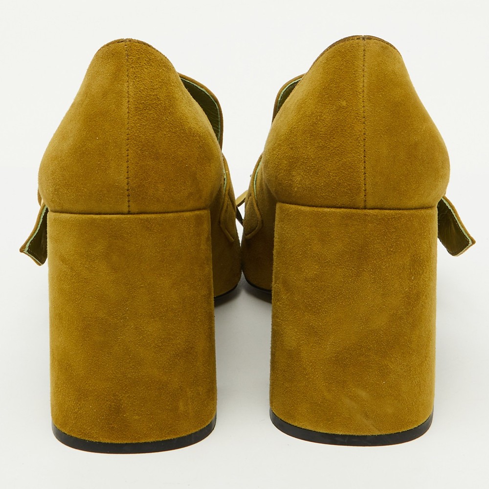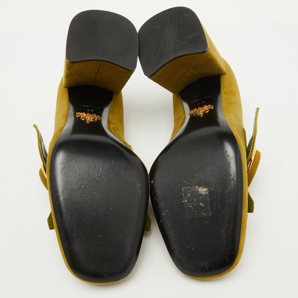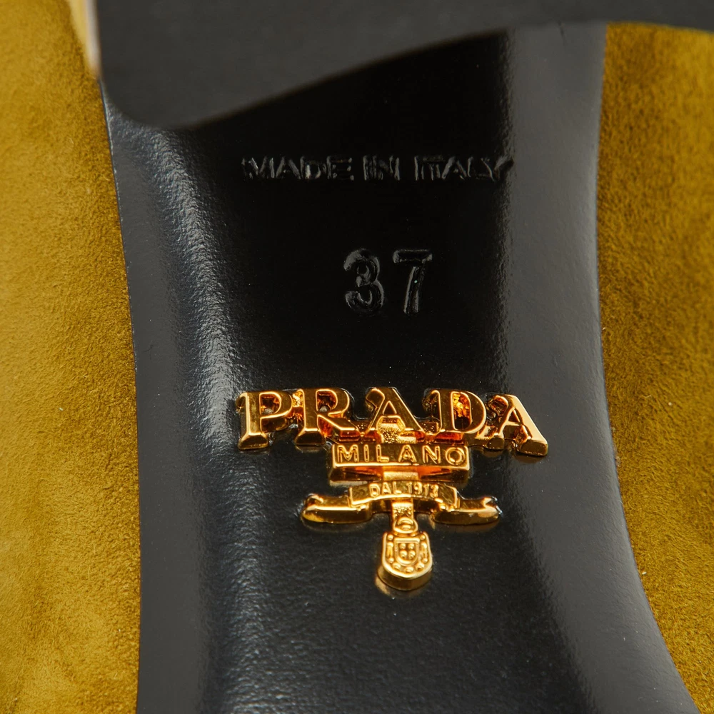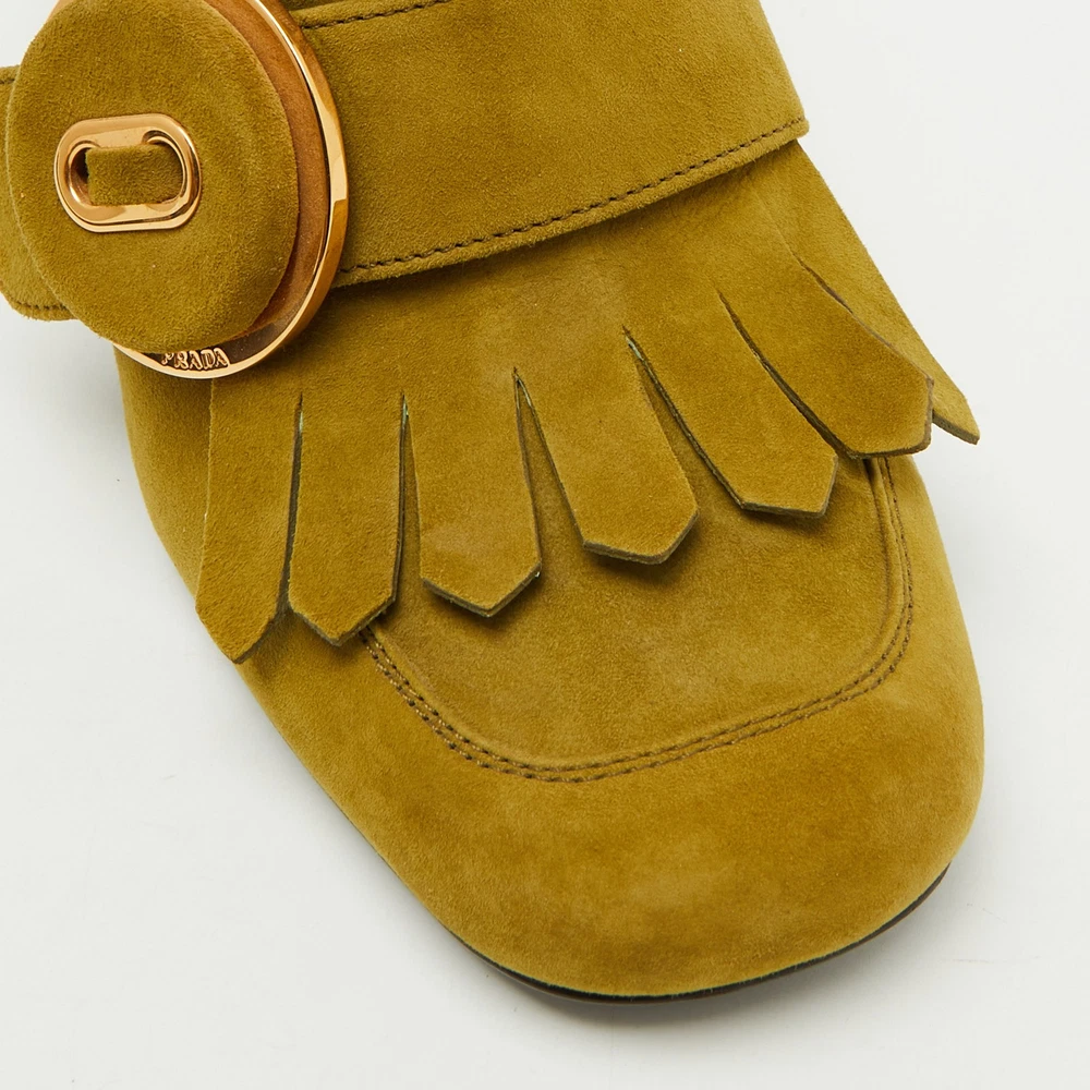 Exhibit an elegant style with this pair of pumps. These elegant shoes are crafted from quality materials. They are set on durable soles and sleek heels.Certified by The Luxury Closet - This item has gone through a detailed authentication process overseen by our experts. We offer a lifetime guarantee of authenticity on all our items. Import duties, taxes and charges are not included in the item price. These charges are the buyers responsibility. Please check with your country’s customs office to determine what these additional cost will be prior to buying. Our eBay Store About Us Contact Us Add to Favorite Sellers Prada Green Suede Fringe Block Heel Pumps Size 37 $187 Exhibit an elegant style with this pair of pumps. These elegant shoes are crafted from quality materials. They are set on durable soles and sleek heels. Product Details Brand Color Green Dimensions Material Suede Size 37 Outsole Width 8 cm Outsole Length 23 cm Heel Height 9 cm Includes The Luxury Closet Packaging Certified by The Luxury Closet This item has gone through a detailed authentication process overseen by our experts. We offer a lifetime guarantee of authenticity on all our items. How We Check The in-house team of experts at The Luxury Closet is highly trained to verify the authenticity and the condition of the luxury products. They ensure that only 100% authentic items are put on sale.The evaluation process is unique with its own mix of assessment criteria and differs according to the category. Each item is evaluated based on the following combination of hallmarks, hardware, stitching, symmetry, material, craftsmanship, stamping, codes, hologram stickers, and packaging. Our authenticators also check if the items have been modified or amended (e.g., aftermarket diamonds, replaced batteries, repaired bags, etc.) International Buyers Import duties, taxes and charges are not included in the item price. These charges are the buyers responsibility. Please check with your country’s customs office to determine what these additional cost will be prior to buying.