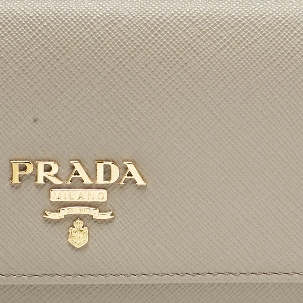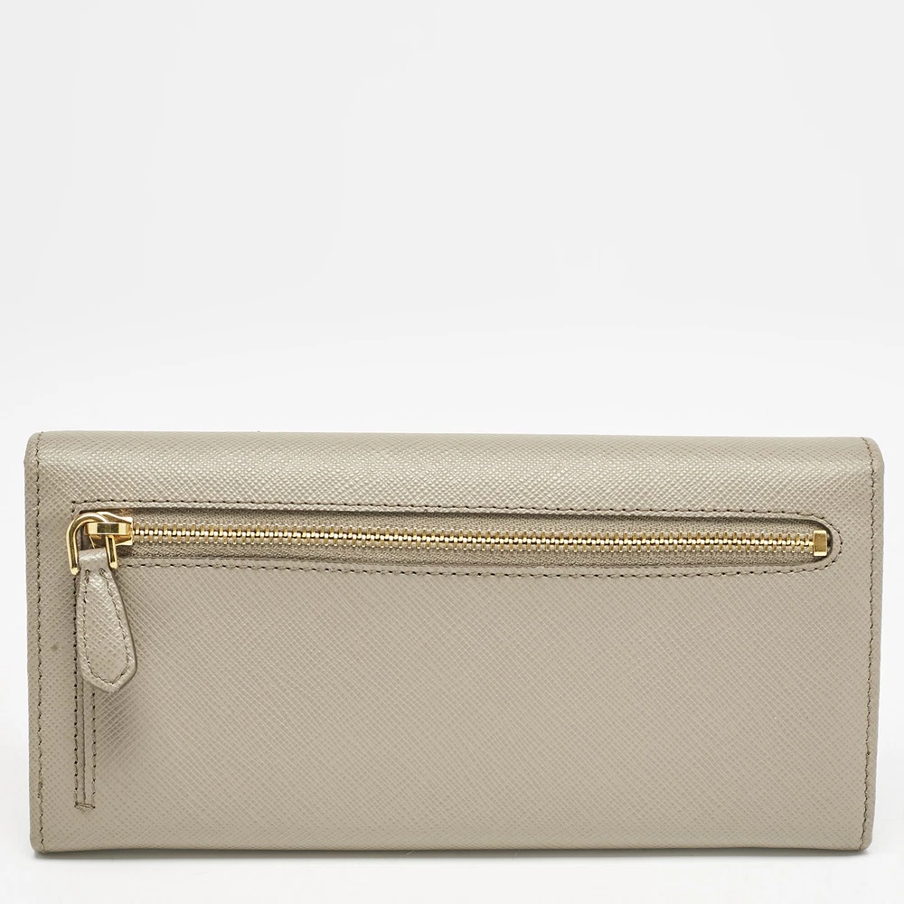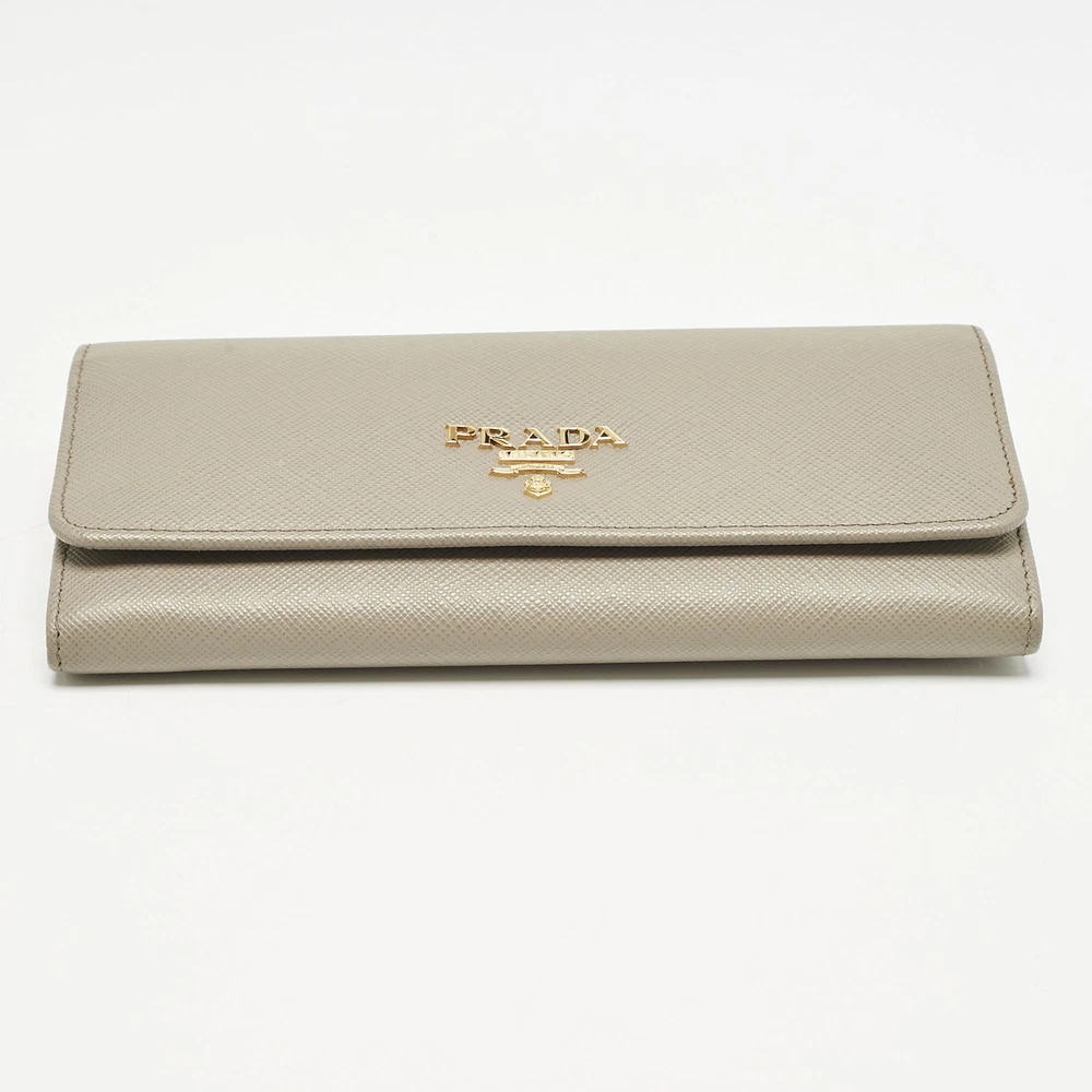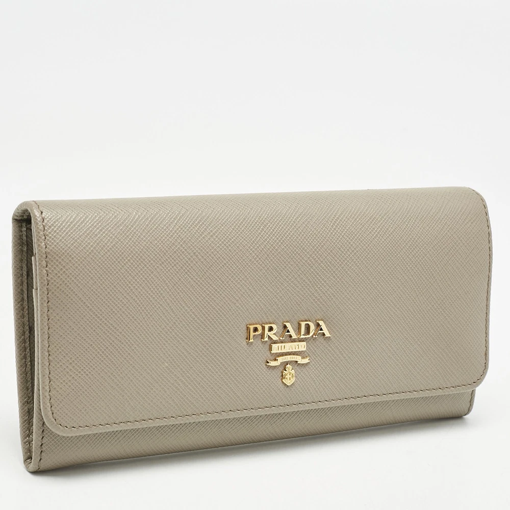 Prada’s continental wallet in grey leather features a sleek flap design and organized interior. With its clean lines and subtle logo detailing, it’s the perfect everyday companion—slipping into totes or carried solo for understated luxury.Certified by The Luxury Closet - This item has gone through a detailed authentication process overseen by our experts. We offer a lifetime guarantee of authenticity on all our items. Import duties, taxes and charges are not included in the item price. These charges are the buyers responsibility. Please check with your country’s customs office to determine what these additional cost will be prior to buying. Our eBay Store About Us Contact Us Add to Favorite Sellers Prada Grey Leather Logo Flap Continental Wallet $764.5 Prada’s continental wallet in grey leather features a sleek flap design and organized interior. With its clean lines and subtle logo detailing, it’s the perfect everyday companion—slipping into totes or carried solo for understated luxury. Product Details Brand Color Grey Dimensions Material Leather Size Outsole Width Outsole Length Heel Height Includes Certified by The Luxury Closet This item has gone through a detailed authentication process overseen by our experts. We offer a lifetime guarantee of authenticity on all our items. How We Check The in-house team of experts at The Luxury Closet is highly trained to verify the authenticity and the condition of the luxury products. They ensure that only 100% authentic items are put on sale.The evaluation process is unique with its own mix of assessment criteria and differs according to the category. Each item is evaluated based on the following combination of hallmarks, hardware, stitching, symmetry, material, craftsmanship, stamping, codes, hologram stickers, and packaging. Our authenticators also check if the items have been modified or amended (e.g., aftermarket diamonds, replaced batteries, repaired bags, etc.) International Buyers Import duties, taxes and charges are not included in the item price. These charges are the buyers responsibility. Please check with your country’s customs office to determine what these additional cost will be prior to buying.