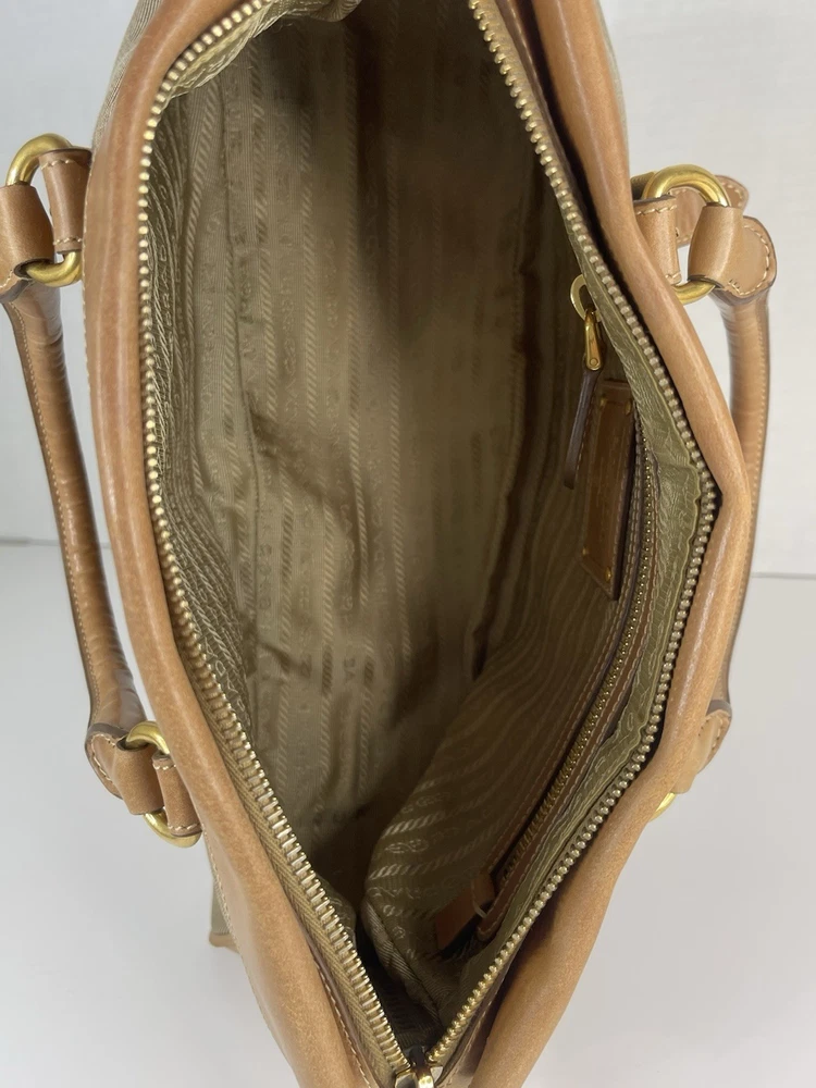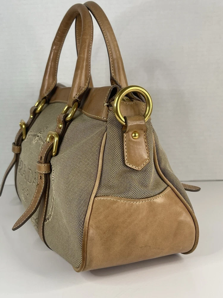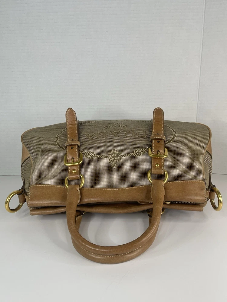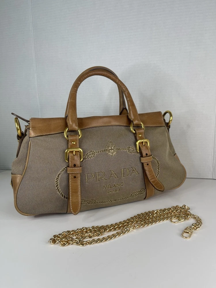 The Prada Hand Bag in Brown Canvas is a luxurious and stylish accessory designed for women. Made in Italy with high-quality canvas material, this hand bag features a handle drop of approximately 5.91 inches, a height of 7.87 inches, and a width of 13.82 inches. With its sleek design and iconic Prada branding, this hand bag is the perfect choice for any fashion-forward woman looking to make a statement with her luggage or travel essentials. THE CHAIN IS UNBRANDED