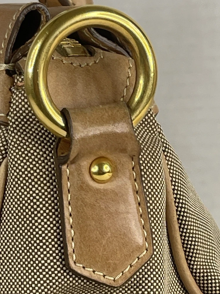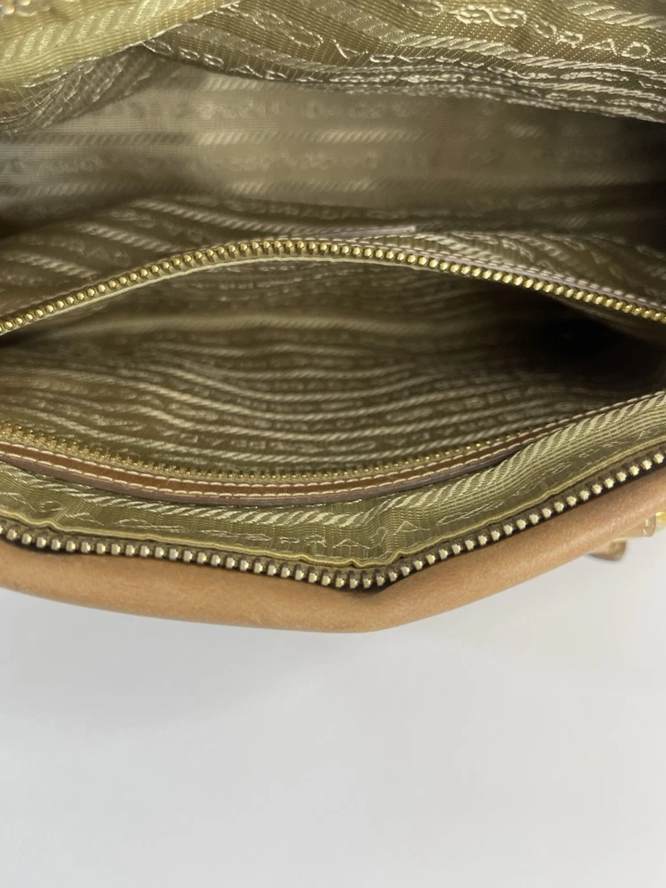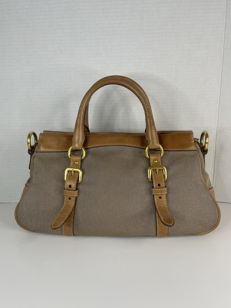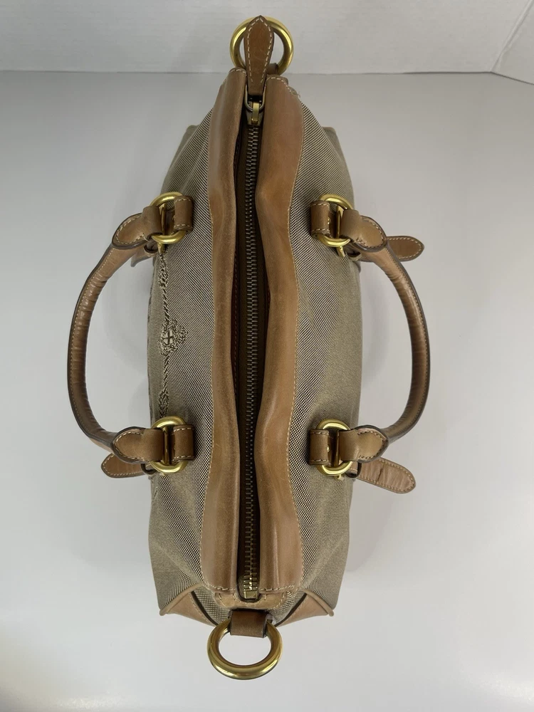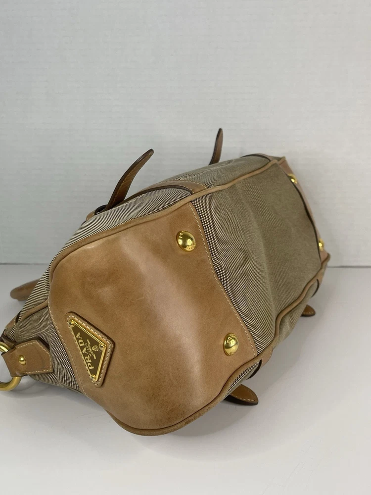 The Prada Hand Bag in Brown Canvas is a luxurious and stylish accessory designed for women. Made in Italy with high-quality canvas material, this hand bag features a handle drop of approximately 5.91 inches, a height of 7.87 inches, and a width of 13.82 inches. With its sleek design and iconic Prada branding, this hand bag is the perfect choice for any fashion-forward woman looking to make a statement with her luggage or travel essentials. THE CHAIN IS UNBRANDED