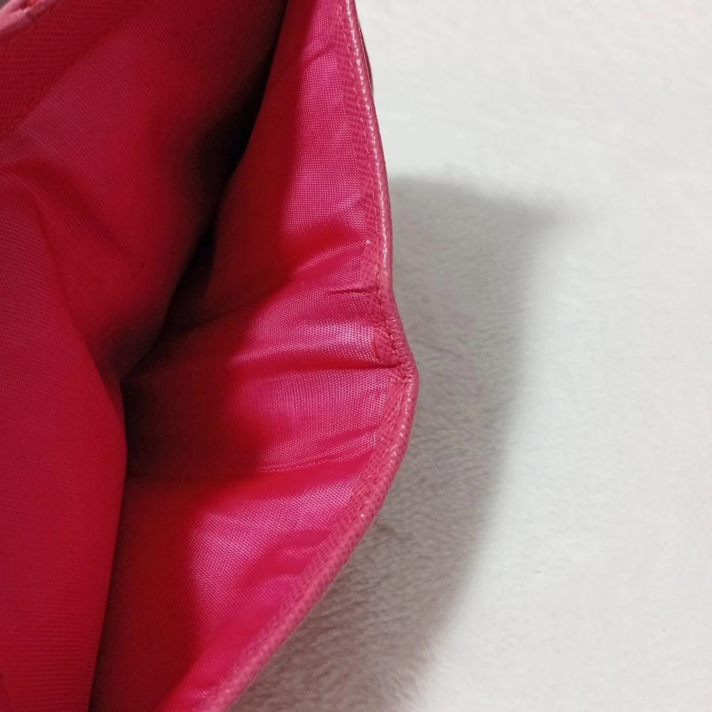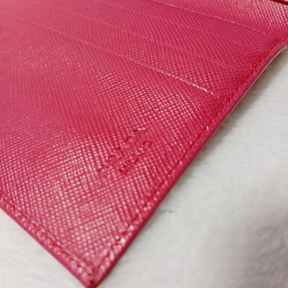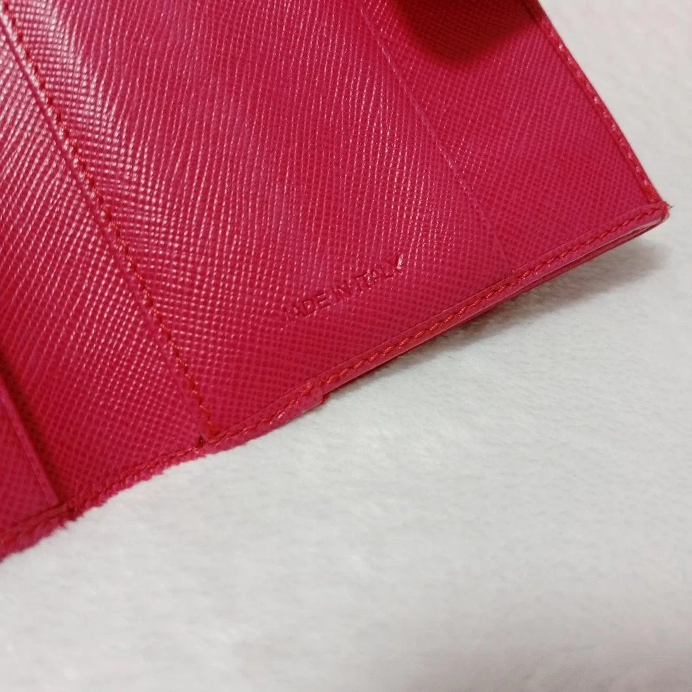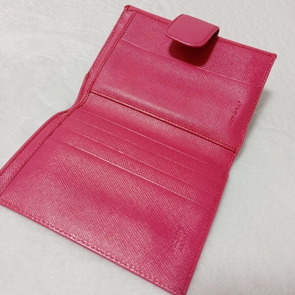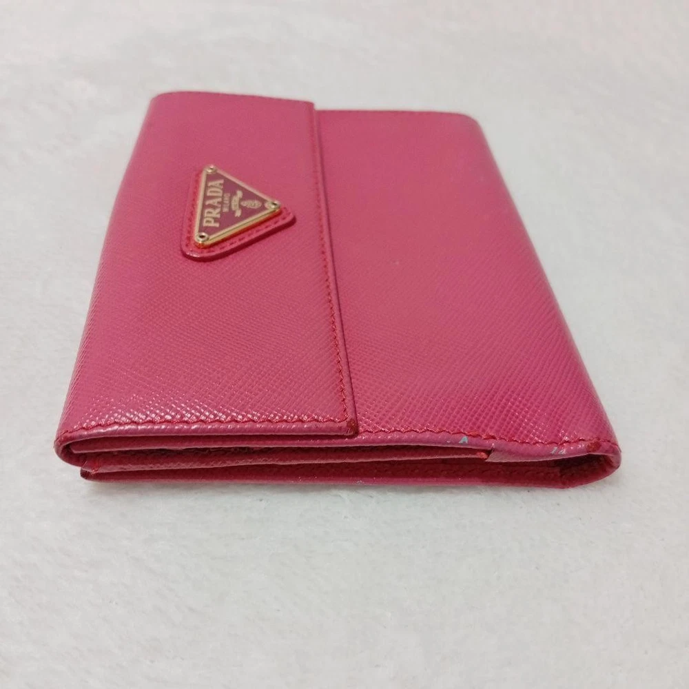 Absolutely love this compact wallet! The pink leather is gorgeous and feels so luxurious. Perfect size for essentials without being bulky. The triangle logo adds that classic Prada elegance. Highly recommend!