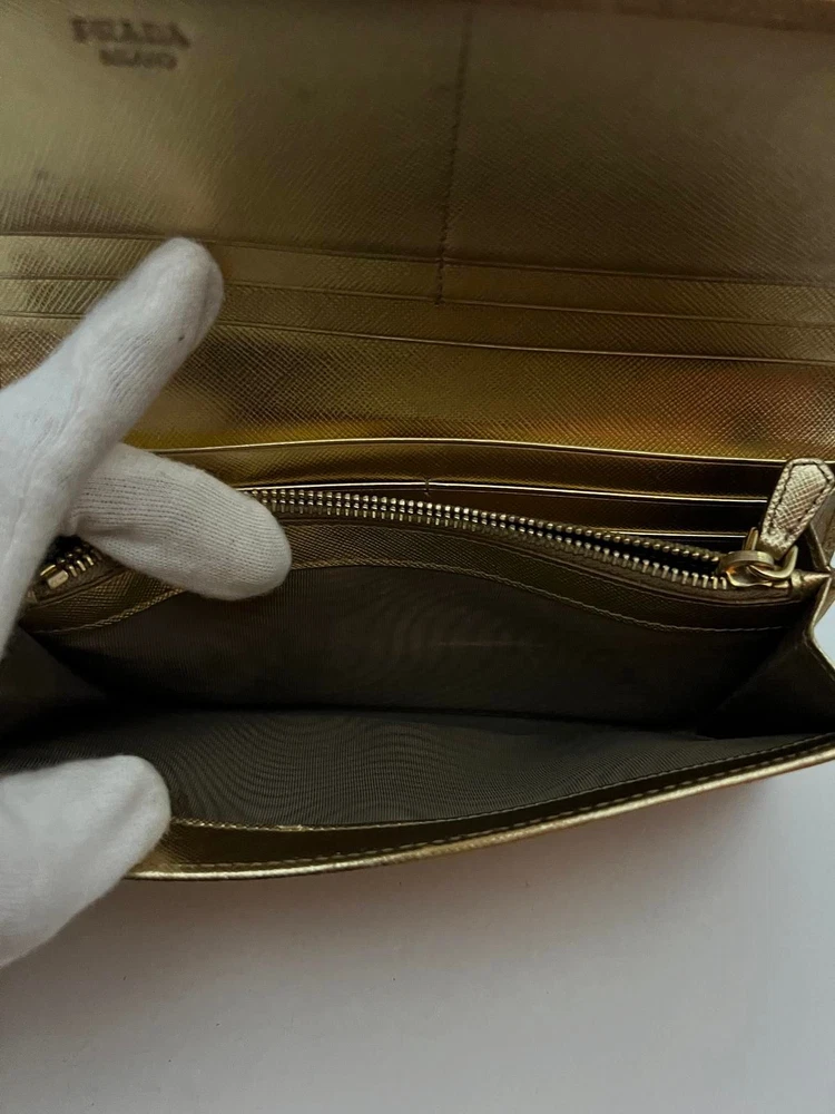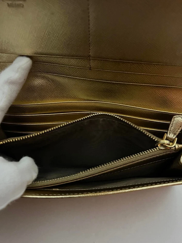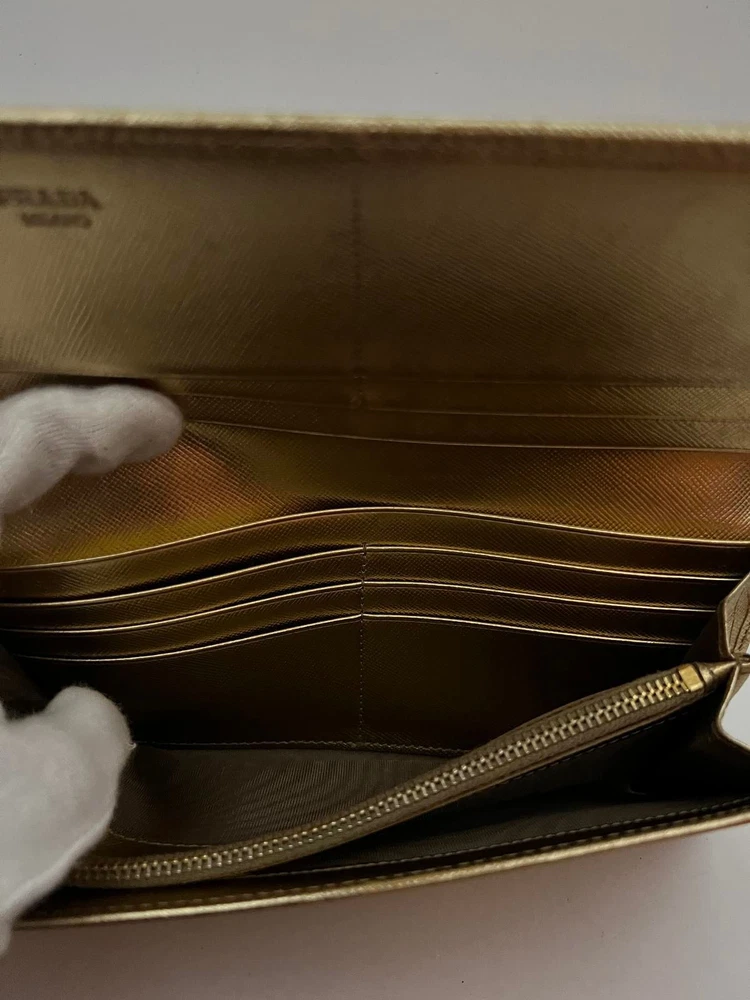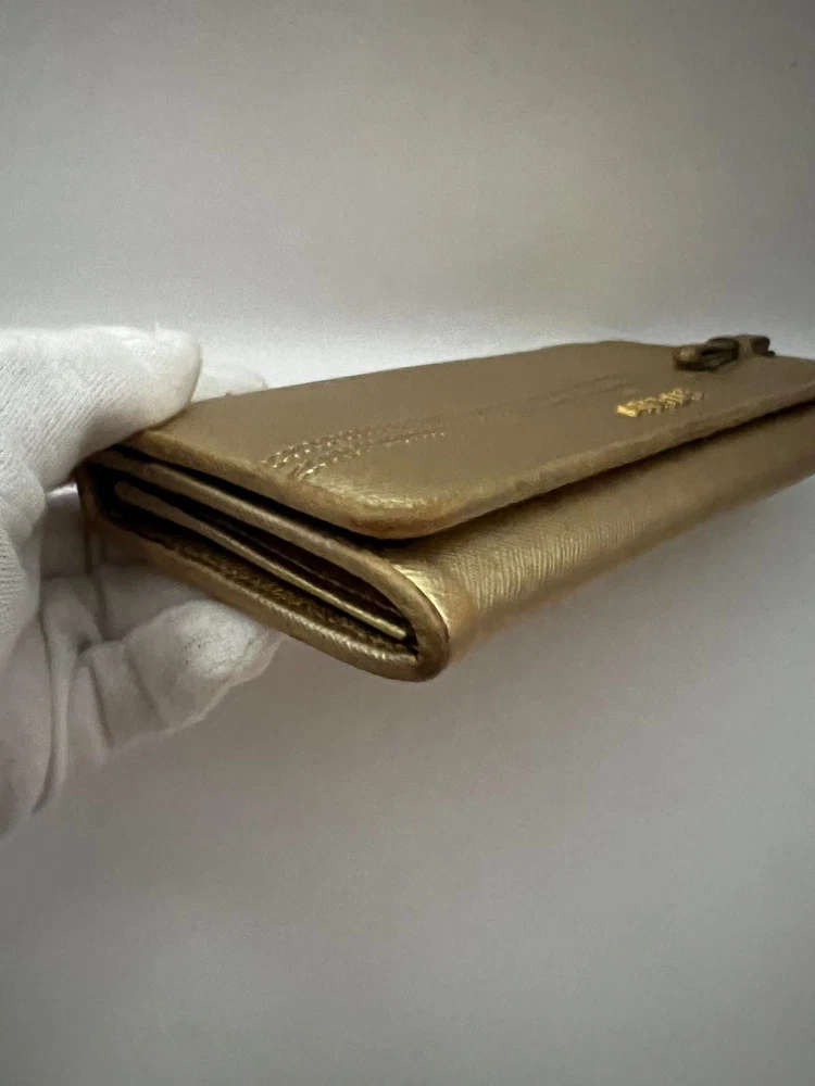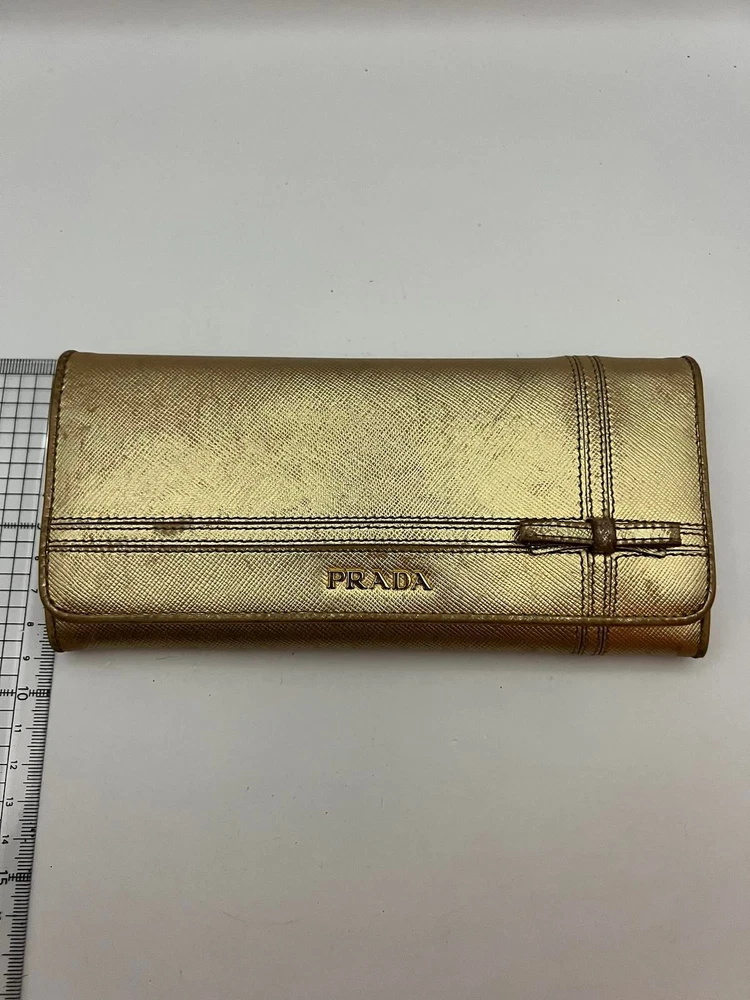 Just got this Prada long wallet and it’s even better than expected! The gold leather is still luxe with a perfect vintage vibe, and the size fits everything without being bulky. Light wear adds character, and the FedEx shipping was super fast. Love that it’s professionally appraised—feels like a steal for the price! Highly recommend for anyone wanting designer quality without the brand-new price tag.