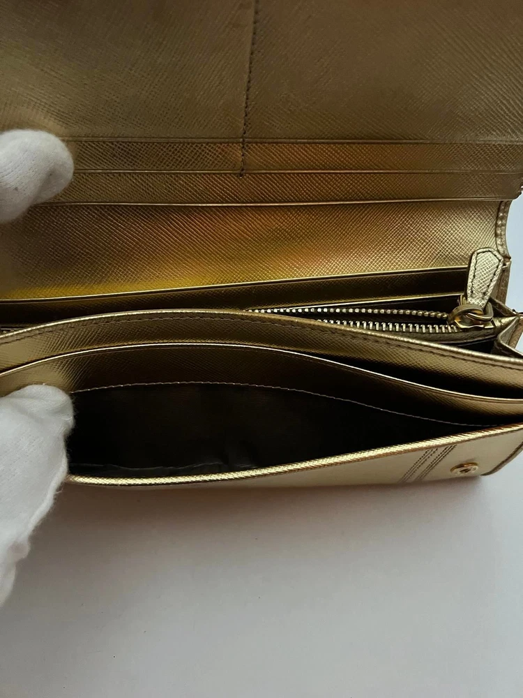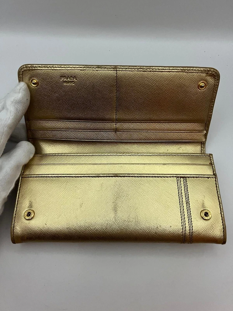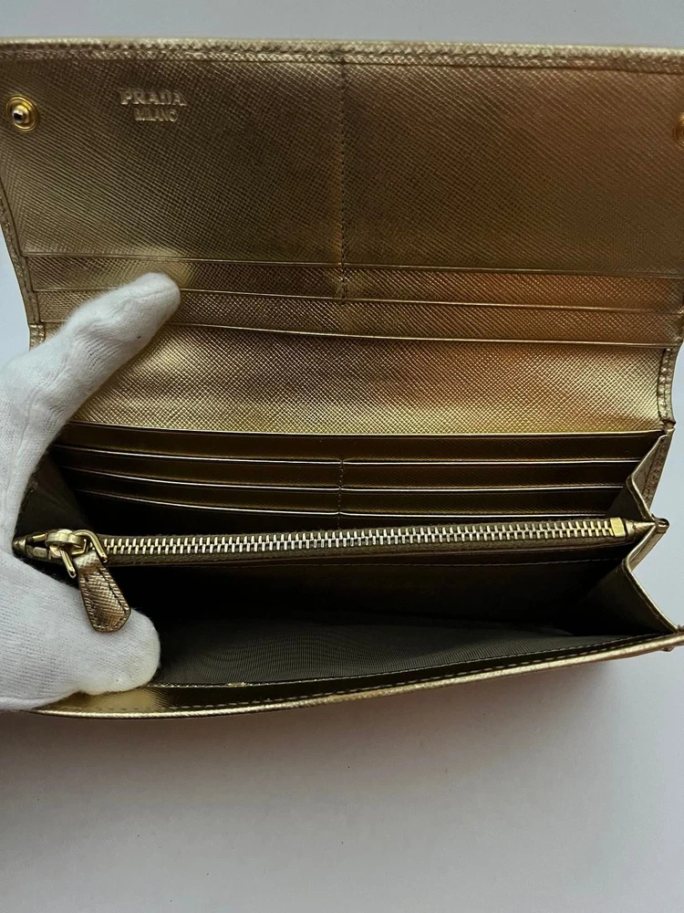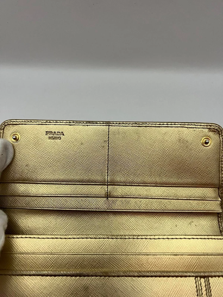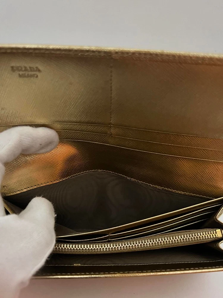 Just got this Prada long wallet and it’s even better than expected! The gold leather is still luxe with a perfect vintage vibe, and the size fits everything without being bulky. Light wear adds character, and the FedEx shipping was super fast. Love that it’s professionally appraised—feels like a steal for the price! Highly recommend for anyone wanting designer quality without the brand-new price tag.