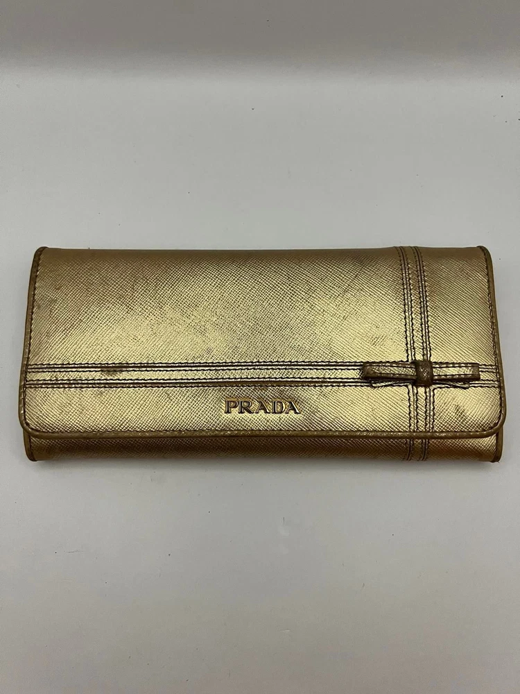 PRADA Long Wallet Leather Gold USED E1009-10 Expedited shipping(Fedex) With tracking number Shipping from Japan Add to Watchlist!! Subscribe to your Watch list to receive exclusive offers from us. Item Description Size Approx: 19cm x 9cm Size Approx: 7.5inch x 3.6inch This item has been professionally appraised. This item is a used item with signs of use. There may be scratches, stains, tears, or frayed areas, so please check the photos carefully. Shipping Expedited Shipping We will ship using FedEx. We usually ship within 3 - 5 business days of receiving cleared payment. All deliveries have a tracking number. For areas where FedEx delivery is difficult or special fees are required, we will ship via EMS or other alternative shipping companies. Payment Please update your eBay confirmed shipping address before purchasing an order,as we can not change it after shipment. As for the re-shipment, buyer necessary to pay an additional charge. Packing We carefully pack and ship from our professional shipping team in Tokyo. Additional items ship at $1.50 each, and the maximum shipping charge for a single order is automatically capped at $50 at checkout - no need to contact us beforehand. We will dispatch your order as soon as your items are packed and ready. Gift wrapping is unfortunately not accepted at this time. Items that have been on sale for more than a certain amount of time or prize items may have age-related deterioration, small scratches, or stains on the outer box. International Buyers - Please Note Import duties, taxes and charges are not included in the item price or shipping charges. These charges are the buyer's responsibility. Please check with your country's customs office to determine what these additional costs will be prior to bidding/buying. These charges are normally collected by the delivering freight (shipping)company or when you pick the item up - do not confuse them for additional shipping charges. We do not mark merchandise values below value or mark items as "gifts" - US and International government regulations prohibit such behavior. About Us Thank you for taking a look at our items! We are a start-up company in Tokyo. We bring Japanese charm and items to people all over the world! If you are looking for Japanese items, please let us know and we will be happy to help you in any way we can! Here are some of our other items for sale. Please take a look at the feedback we have received from our customers! Add to Watchlist!! Subscribe to your Watch list to receive exclusive offers from us.